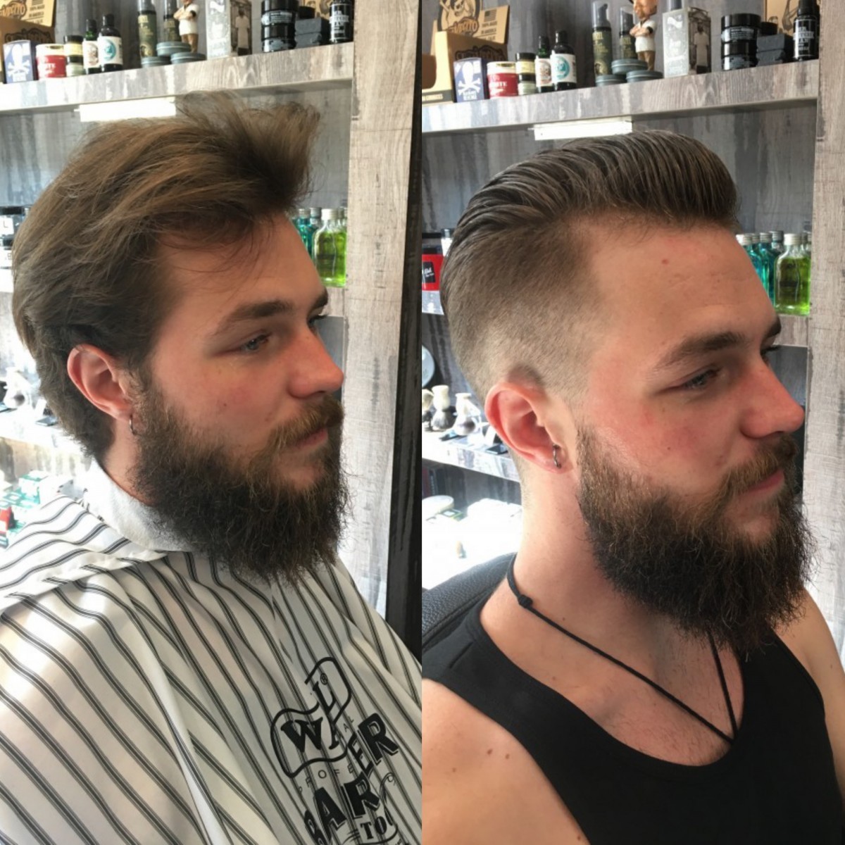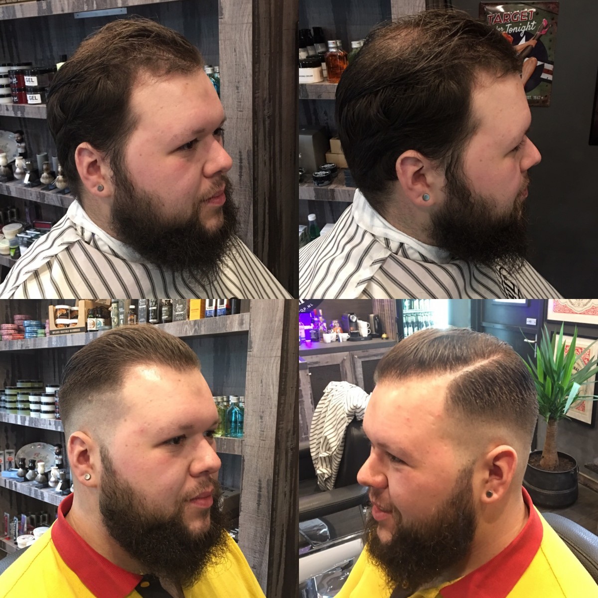 Het klinkt misschien gek maar hoe korter je haar hoe langer je baard soms kan lijken. Kijk maar eens goed naar onderstaande foto’s. Het zijn allemaal foto’s van klanten bij mij in de barbershop en geen modellen foto’s die bewerkt zijn.