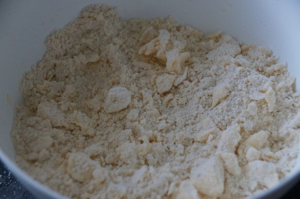 - Meng de bloem met de blokjes koude roomboter en mix tot je een kruimelig deeg hebt. Dit kan je ook gewoon met je handen doen, jullie zijn toch niet vies van een beetje vieze handen toch?
