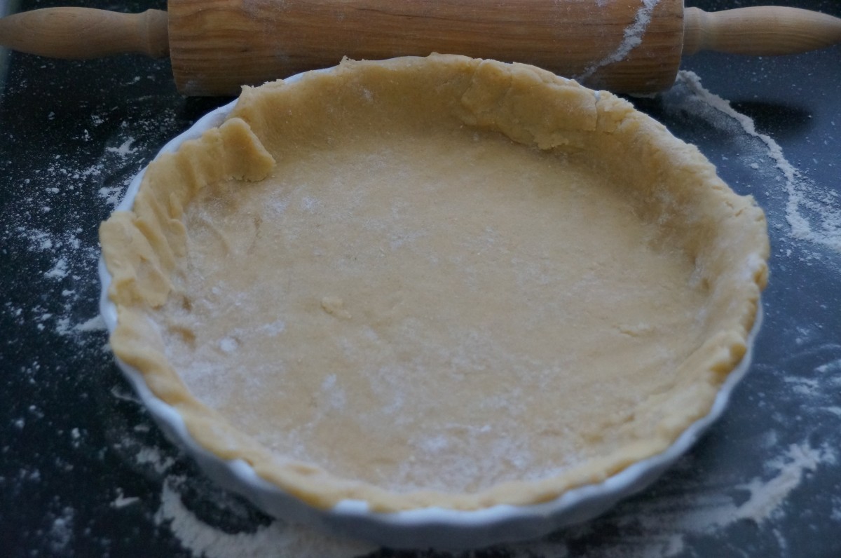 - Haal het deeg uit de koelkast en rol 2/3 van het deeg uit tot deze in de taartvorm past