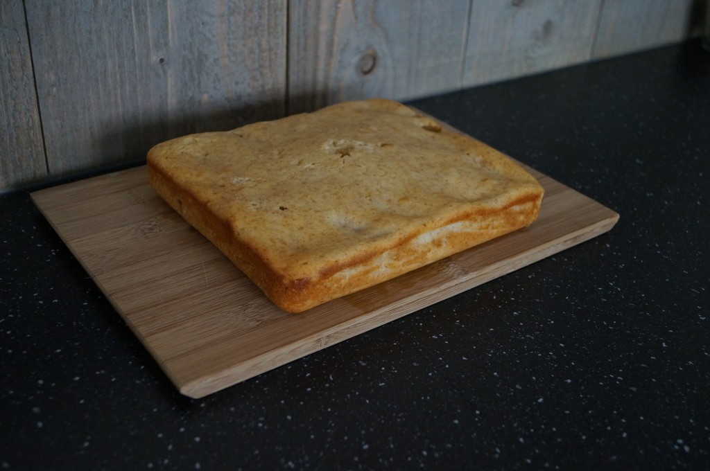 * Bak de cake ongeveer gaar in 40 minuten, prik met een satéprikker in de cake om te kijken of deze gaar is…als de satéprikker er schoon uit komt is de cake klaar.(de cake moet nog wel een klein beetje meeveren als je het uit de oven haalt)