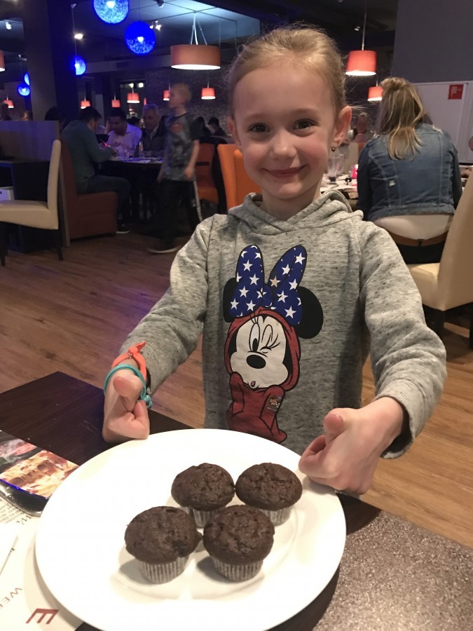 Tadaaaaaa!!! Wat krijg je als je zelf je eten mag kiezen??? Juist 4 chocolade cakejes hahaha.