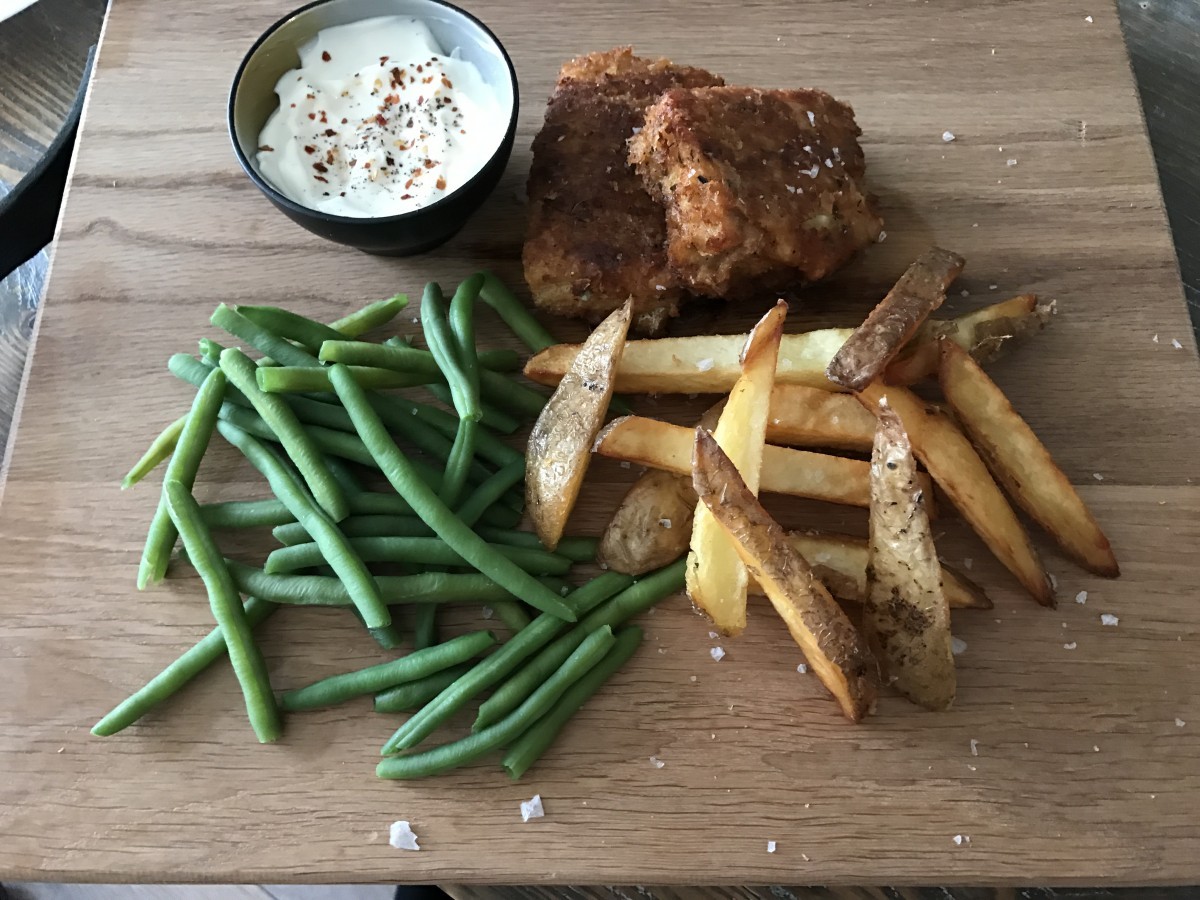 Dit was lekker!!! Zelfgemaakte patat met zelfgemaakte mayo en zelfgemaakte vissticks. Die kant en klare vissticks vind ik echt niet te vreten…deze kan ik iedere dag wel op. Recept komt snel op de site.