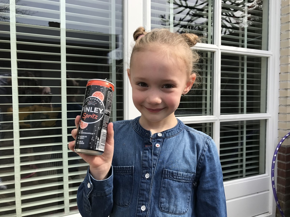 Tja, was vergeten te zeggen tegen de kids dat zij eraf moesten blijven. Dom, want als er iets nieuws in de koelkast staat zijn zij heeeeel nieuwsgierig. De kids mogen eigelijk geen prik, maar tegen dit bekkie kan je toch geen nee zeggen.