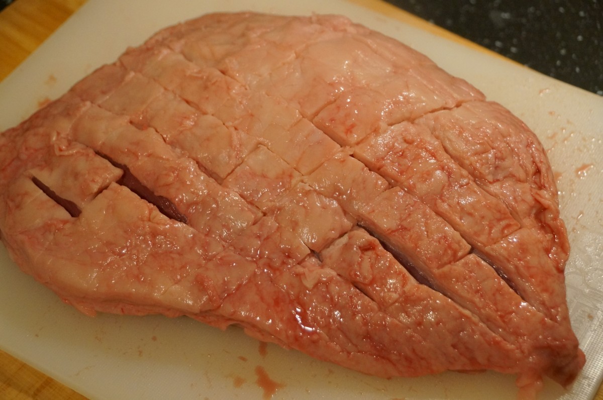 - Snijd de vetkant van de picanha met een scherp mes in. Doe dit voorzichtig en niet te diep