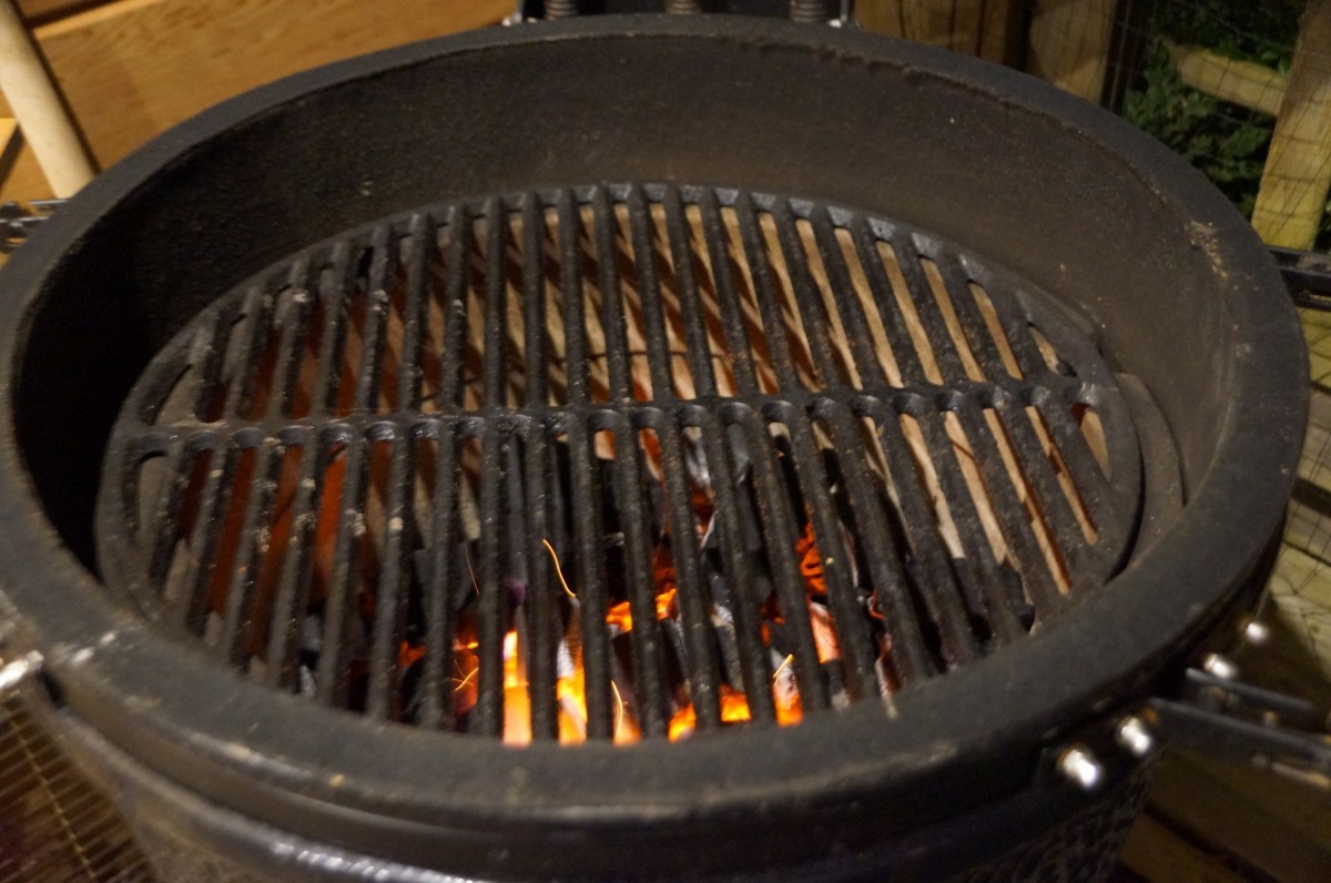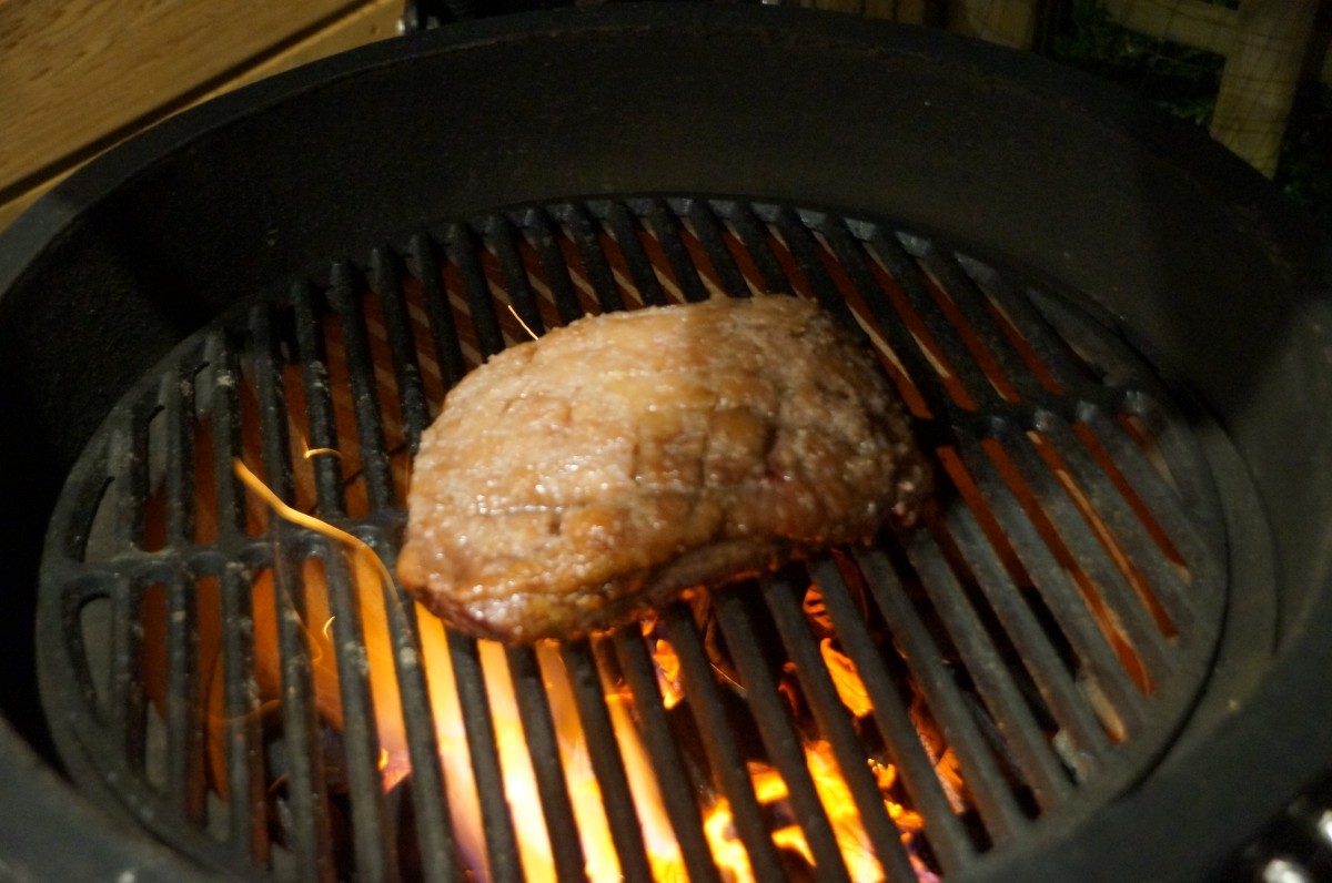 - Nu gaan we grillen! Platesetter eruit en nu boven direct vuur het vlees afgrillen, zorg voor een heet vuur en het liefst een gietijzeren rooster, dit geleid de warmte nog beter.