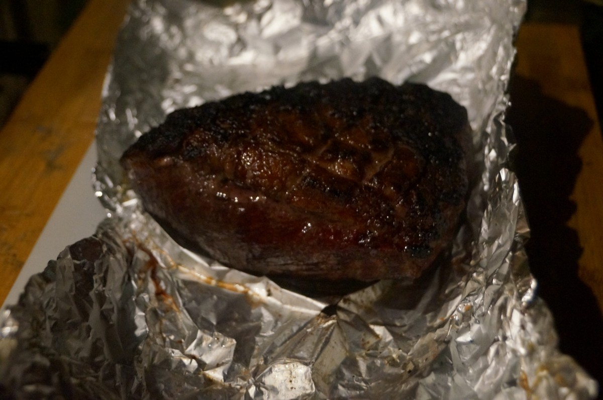- Neem nu het vlees van het vuur en leg het minimaal 10 minuten te rusten. Dit is super belangrijk! Het rusten zorgt ervoor dat de sappen in het vlees trekken en je een super mals en sappig stuk(je) vlees krijgt. Vergeet niet het vlees tegen de draad in te snijden, verkeerd snijden kan je vlees taai maken.