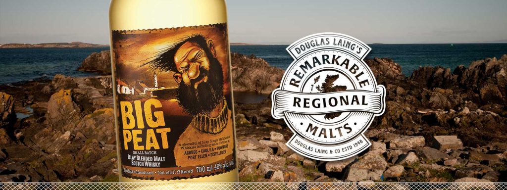 Over smaak valt niet te twisten maar als ik deze koker in de winkel zag staan zou ik hem laten staan. Ik ben persoonlijk ook geen fan van kitscherige flessen met gouden tierelantijnen, maar dit is ook niet echt mijn smaak qua uitstraling. Ik kan er niets aan doen maar het geeft een beetje het gevoel van dat het nooit wat kan wezen. Ik heb deze whisky binnengekregen om te mogen testen en hij moet dus tegen heel wat vooroordelen opboksen. Big Peat is een blended whisky die is gemaakt van alleen maar Islay whisky’s. Voor Big Peat zijn Arbeg, Caol Ila, Bowmore en Port ellen gebruikt, allen erg mooie whisky’s. Waarom zou je deze whisky’s mixen? Er worden heel veel vaten gemaakt die misschien niet helemaal de kwaliteit of gewenste resultaat hebben. Wanneer je ze samen brengt met weer andere whisky’s kunnen zij dan juist weer een heel mooi geheel vormen. Denk aan verschillende artiesten, allemaal een eigen talent maar op zichzelf nooit zo strak als in een band waar alles mooi samenkomt. Een mooie blend is dus ook niet goed te krijgen met slechte whisky’s. Wees dus maar niet bang dat ze in een blended whisky alleen maar bocht stoppen. Ik ga mij eens schrap zetten voor de Big Peat die ik mag gaan proeven.