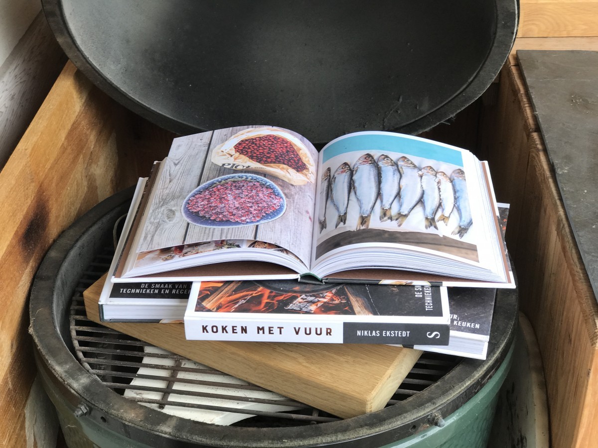 De lay-out van het boek spreekt meteen aan. Het ziet er stoer uit en het geeft duidelijk weer waar het boek over gaat. Namelijk koken met vuur! Nieuwsgierig als ik ben, dook ik meteen het boek in om te kijken wat voor recepten er allemaal in staan. Nu kwam er wat verwarring. De recepten die er in staan zijn aan de ene kan ontzettend basis en aan de andere kant ook weer helemaal niet voor de hand liggend. Dit is geen boek waar je even snel doorheen moet bladeren. Het is een boek waar je voor moet gaan zitten en wat je even op je moet laten inwerken. Dit is totaal geen straf omdat het boek heel erg mooi weergegeven is. Er staan super mooie foto’s in en het klinkt misschien heel raar, maar ook het papier voelt erg prettig. Het is stevig papier wat lekker in de hand ligt en een luxe gevoel geeft. Het boek start met een persoonlijk verhaal over de schrijver, een topkok uit Zweden, Niklas Ekstedt. Hij neemt je mee in zijn verhaal over zijn passie voor koken en over het roer helemaal omgooien. Super herkenbaar want wij hebben een paar jaar geleden ook het roer helemaal omgegooid. Daarna krijg je uitleg over het koken op vuur en wat je hiervoor nodig hebt. Als je dus de tijd neemt om alles goed te lezen dan kan je ook echt een hoop leren.