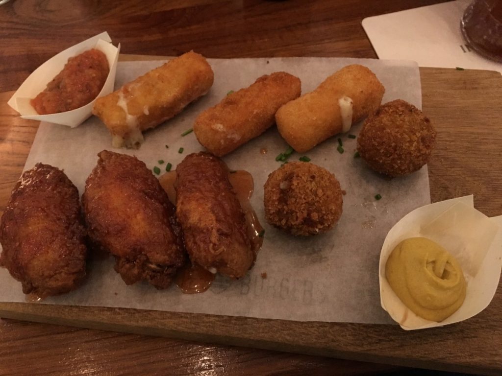 Ook hier weer is de naam onwijs goed bedacht. Wij kunnen nooit kiezen wat we willen eten, dus als er op een kaart een mix staat van verschillende gerechtjes dan kunnen wij ineens wel kiezen. Bij Fucking Everything krijg je mix van voorgerechtjes die Brute Burgers serveert. Het voorgerecht bestond uit zoet/pittige kippenvleugels, Cheese Sticks met kaas van Van Wees en bitterballen van Patisserie Holtkamp. De kippenvleugels waren lekker mals en inderdaad pittig maar niet te. Vaak als als er op een kaart pittig staat dan is het helemaal niet pittig, maar wij zij dan ook wel wat gewend, dus helemaal eerlijk beoordelen is het misschien niet meer. De Cheese Stick waren echt mega lekker, hadden we van te voren niet verwacht maar dit vonden wij echt het lekkerste gerecht van de hele avond. De bitterbalen waren goed maar gewoon een bitterbal.