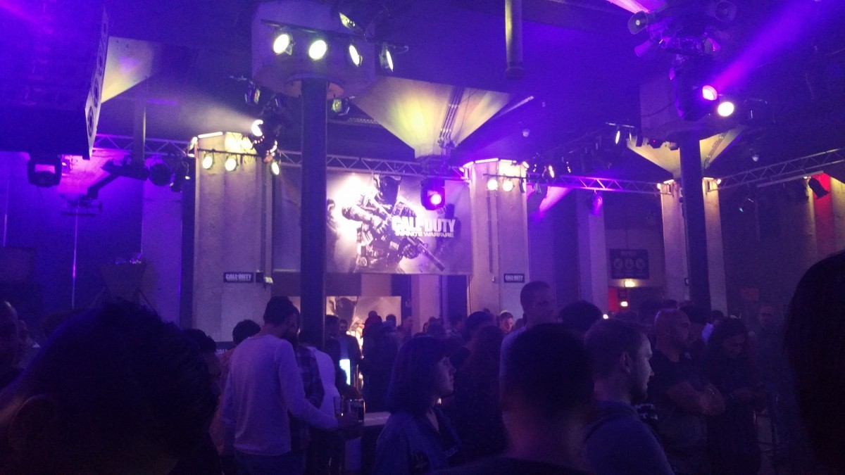Bij de ingang werden we warm verwelkomd met vuurkorven en een ‘rode’ loper met het logo van CoD:IW. Ik heb eerlijk gezegd nooit op een gastenlijst gestaan dus wist ook echt niet wat er ging gebeuren of wat er allemaal ging gebeuren. Dat we binnenkwamen kregen we een plastic bandje om onze pols heen, het bandje werd later weer afgeknipt om kans te maken op de Legacy Edition. We namen plaats, kregen een headset en controller in onze handen geschoven, en gingen meteen een potje Free For All spelen. Helaas waren Ronny en ik het beide niet geworden, maar de buurman naast ons ging er met het spel vandoor! Good game well played. To be fair, het eerste potje ging ook niet zo heel lekker en de competitie was hoog, wat een extra uitdaging gaf.