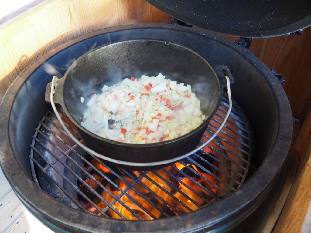 Eten moet er geweldig mooi uitzien??!! Nee, wat mij betreft zeker niet!! Het gaat 100% om smaak en dat is soms maar goed ook. De komende tijd gaan we veel werken met stoofpotten en echte comfort food gerechten en dit zijn niet altijd de meest mooie en aantrekkelijke foto’s. Echter is de smaak ouderwets en zoals het hoort. Dus als je de komende tijd wat roodfoto’s voorbij ziet komen die je minder aanspreken, scroll dan niet gelijk door. Vandaag gaan we voor Chili gemaakt op de BBQ in een Dutchoven, een echt cowboy recept. Ouderwets lekker en verwarmend in de winter. Heb je geen BBQ die geschikt is voor dit recept dan is een oven of fornuis ook prima. Je mist dan wel de lekkere rooksmaak aan je Chili maar die moet je er dan maar bijdenken 😉