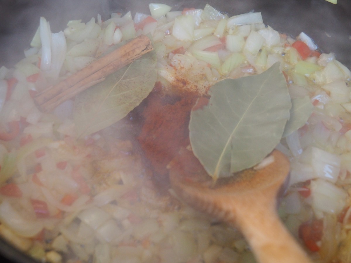 - Vervolgens bak je paprikapoeder, komijnpoeder, sambal en kaneel mee voor 1 min