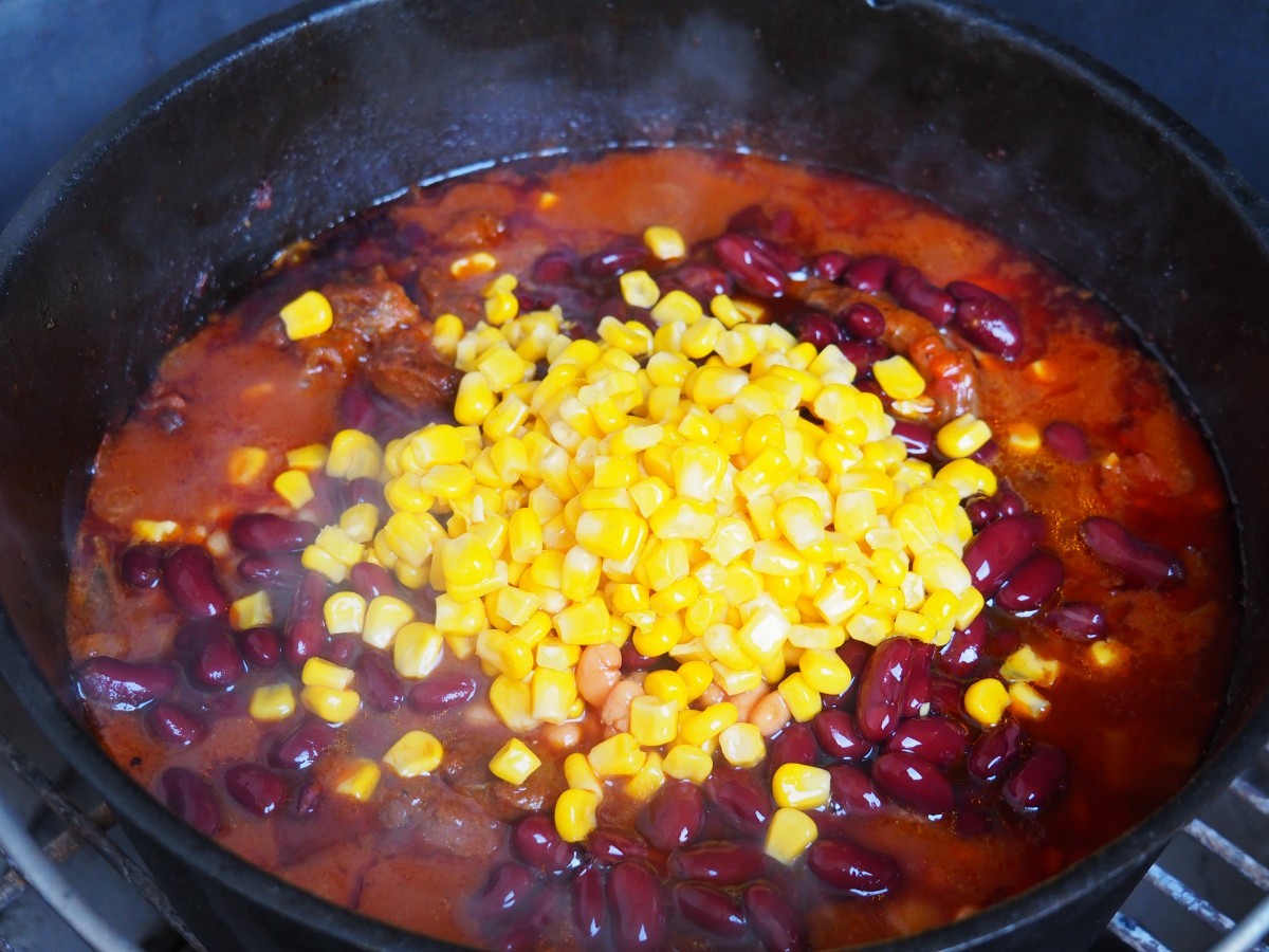 - Het is belangrijk om af en toe te roeren en te kijken of de chili niet droogkookt, anders moet je een klein beetje water toevoegen