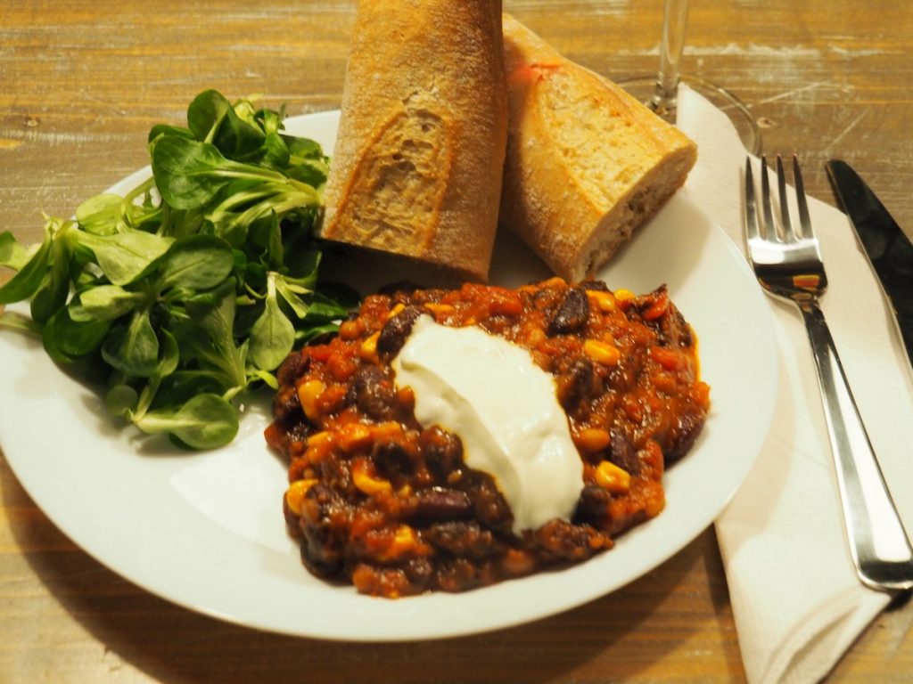 De chili kan je op verschillende manieren eten, met brood, rijst of frietjes. Heb je nog chili over…niet weggooien!! De chili wordt alleen maar lekkerder.