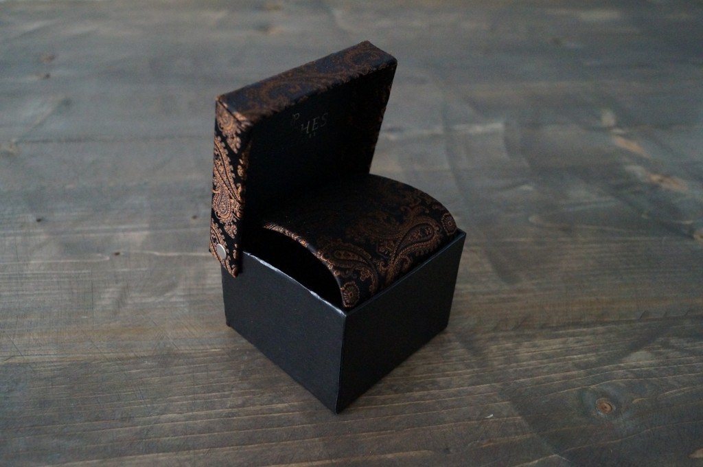 Een heel mooie das van zijde en met de handgemaakt. De kwaliteit en de luxe straalt hiervan af. Ook hier krijg je een heel mooi doosje bij waarin je hem perfect kan bewaren. Maar nu is het lastig om te weten in welk doosje de das zit die je wilt dragen….hahaha daar hebben ze aan gedacht. De deksel van de box is in de zelfde stof als de das! Slim bedacht en geeft aan hoeveel aandacht ze hieraan bestede.