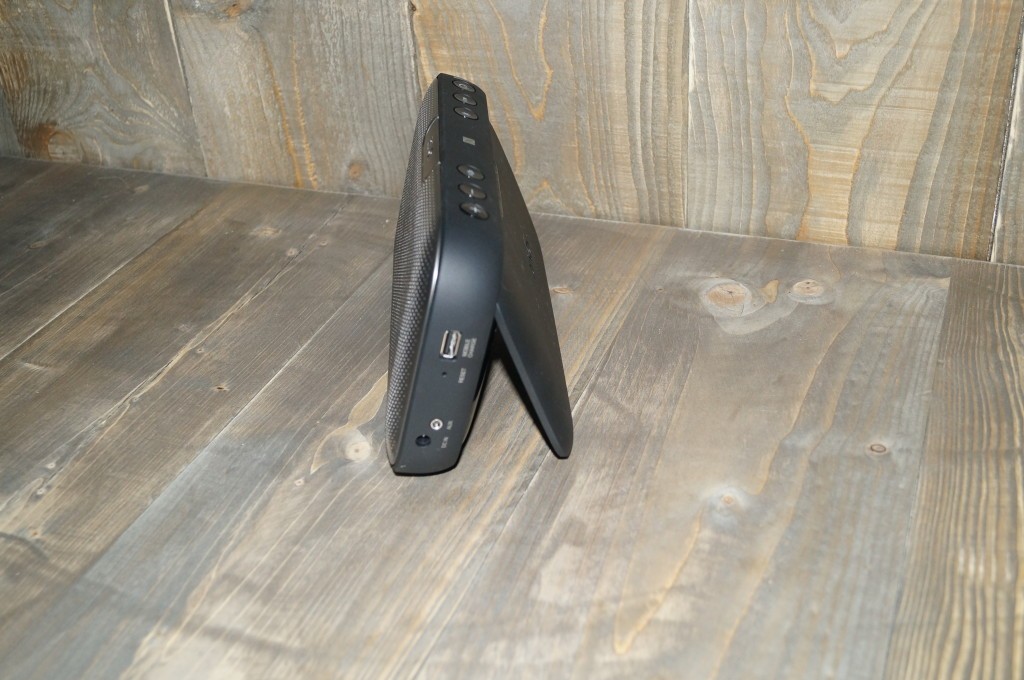 - Geïntegreerde standaard: druk op de achterkant van de speaker en de standaard komt te voorschijn voor uitstekende stabiliteit op ieder oppervlak