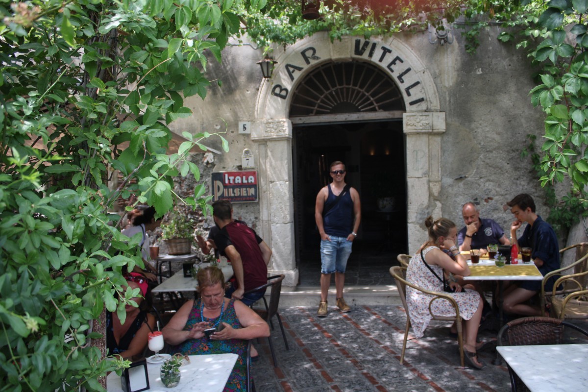 Dit dorpje, of eigenlijk kleine stad (ongeveer 11.000 inwoners) ligt ook in de buurt van ons verblijf en heeft eveneens als filmlocatie mogen dienen. Taormina zelf bestaat uit een stadje aan de bergtop. Hier lijkt de tijd echt nog stil te staan. Toch is dit niet waar regisseur Francis Ford Coppola zijn meesterwerk heeft willen laten voortzetten. Aan de voet van de heuvel ligt nog een klein stukje bebouwde kom, samen met het treinstation van Taormina.