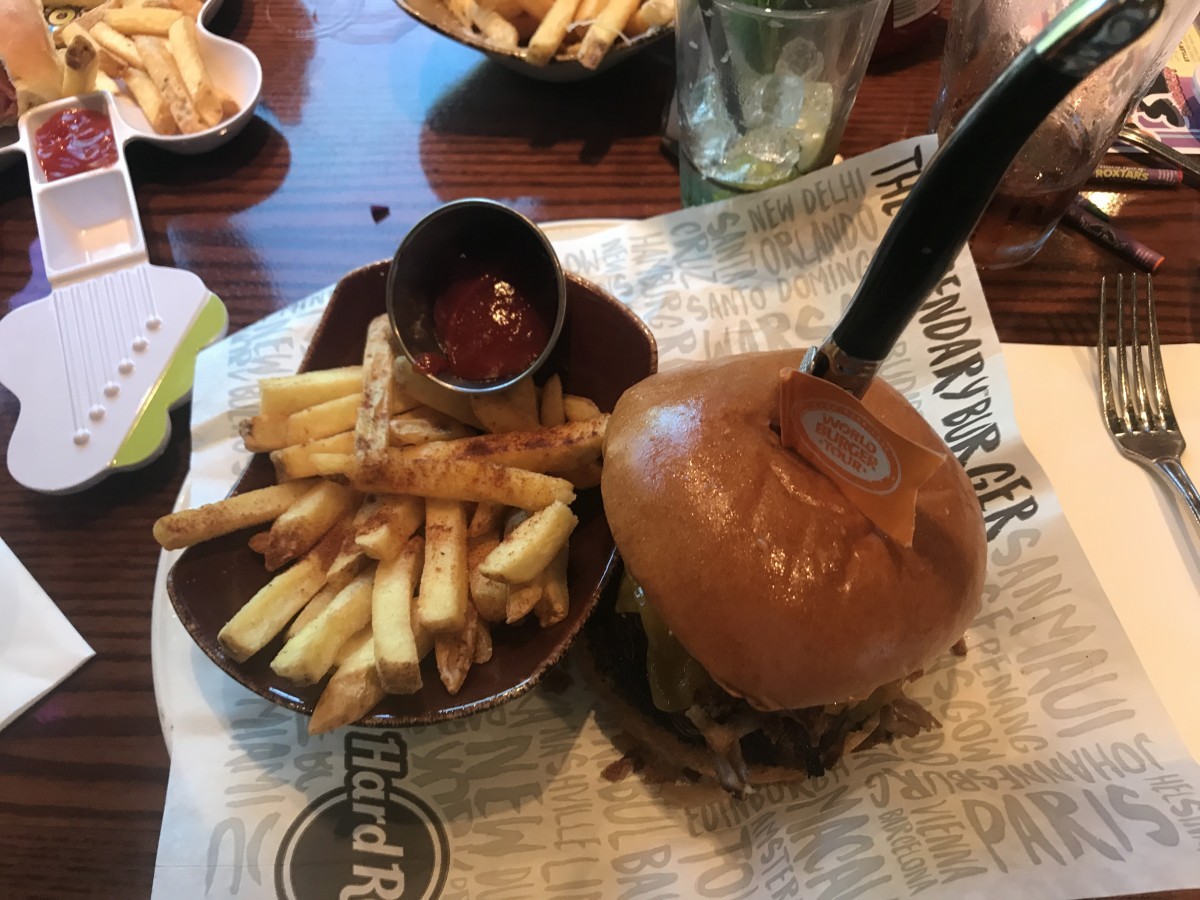 Dit keer mochten wij samen met onze kinderen eten bij het Hard Rock Cafe, ter ere van de World Burger Tour. Dit menu staat speciaal in mei en juni op de kaart….je hebt dus nog even de tijd om deze te gaan proeven. Uiteraard liet ik mij deze kans niet ontglippen en ik ben voor de Tennessee BBQ Burger gegaan. Een geweldige burger van Angus vlees en belegd met cheddar, pulled pork, gebakken uien en bbq saus. Naast deze burgers hebben ze nog verschillende World Burger Tour burgers die allemaal een thema hebben gekregen van een land. Dit loopt uiteen van Spanje tot China en iedere burger heeft de typische smaken van dit land meegekregen. Marie Louise ging niet voor de special maar voor de Guinness & Jameson Bacon burger die zij al eerder genomen had. Dit blijft namelijk echt haar favoriete burger en zij was aangenaam verrast dat deze vast op het menu is komen te staan. Dit was namelijk toen der tijd niet de bedoeling, het zou echt om een special editon gaan. Waarschijnlijk zijn er een hoop mensen geweest die deze burger super lekker vonden, dat ze hem vast op de kaart hebben gezet. Nu kan ook ik niet ontkennen dat hij echt onwijs lekker is!