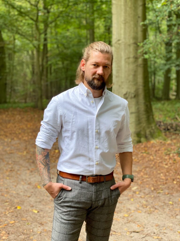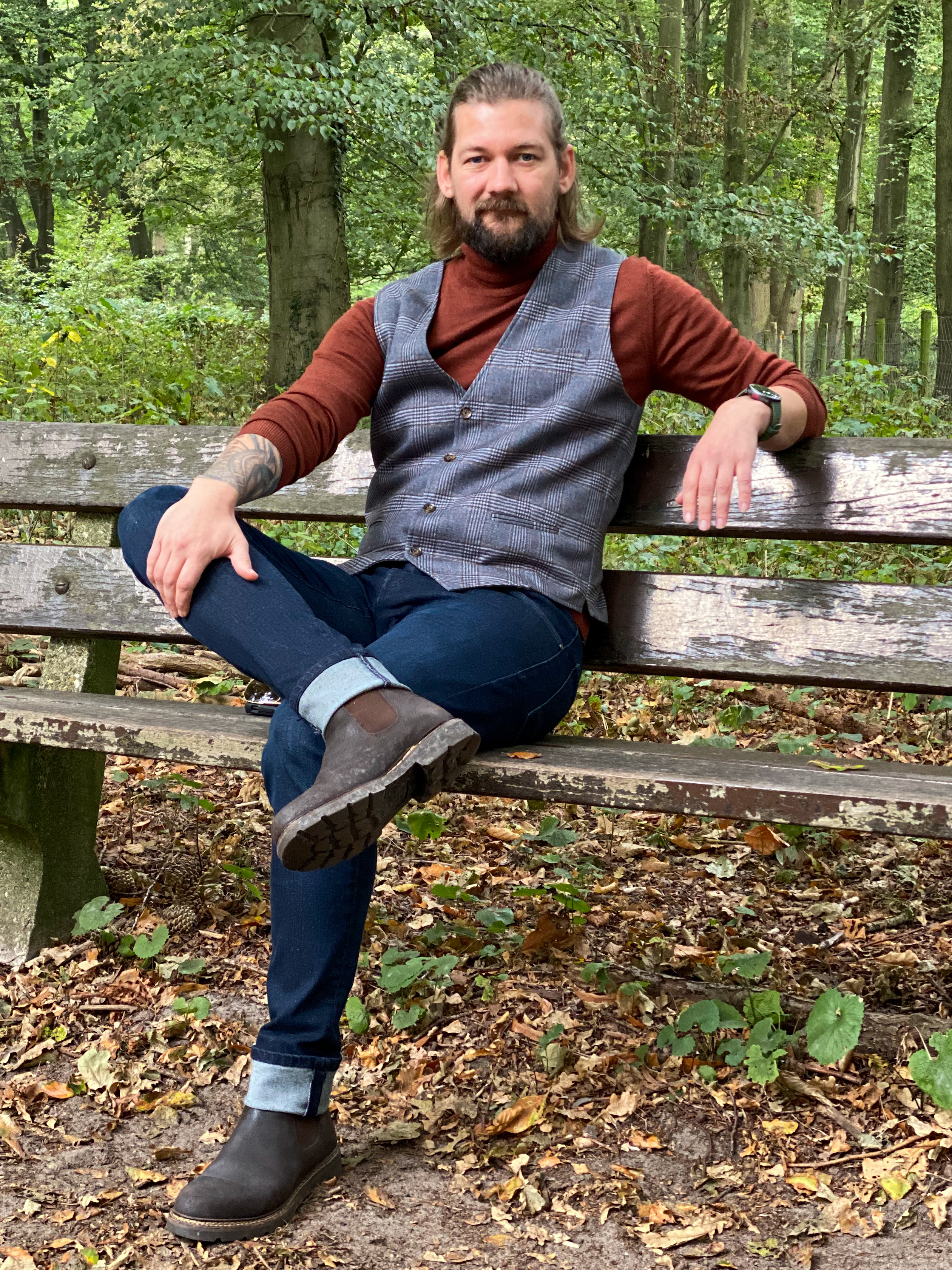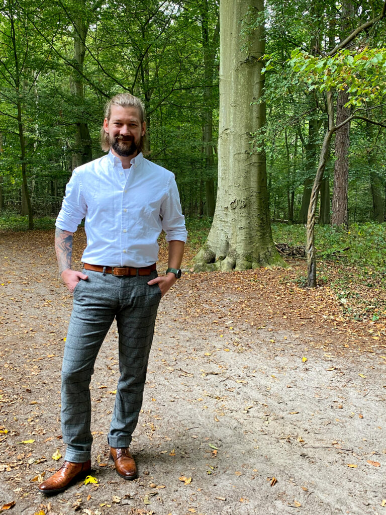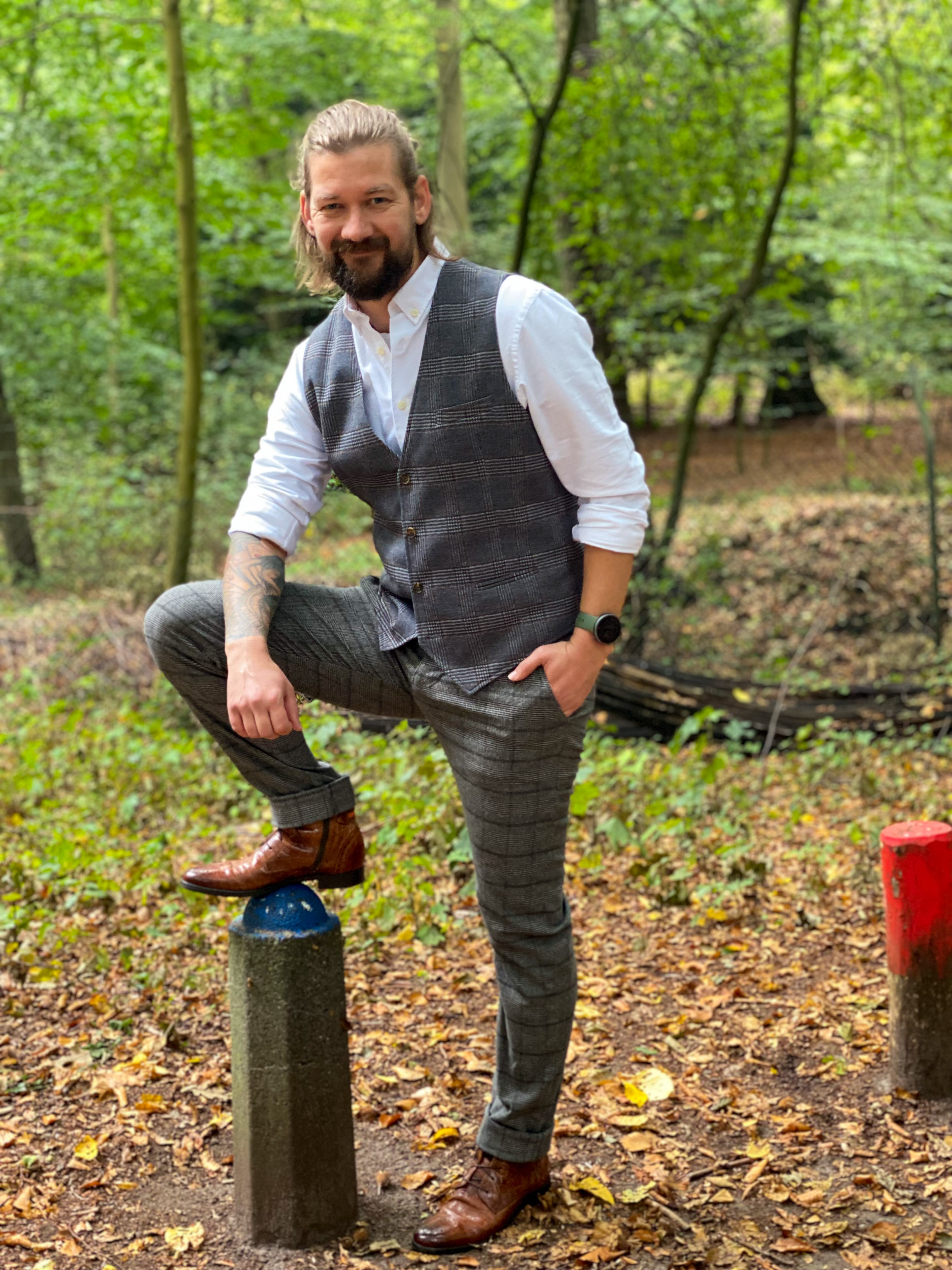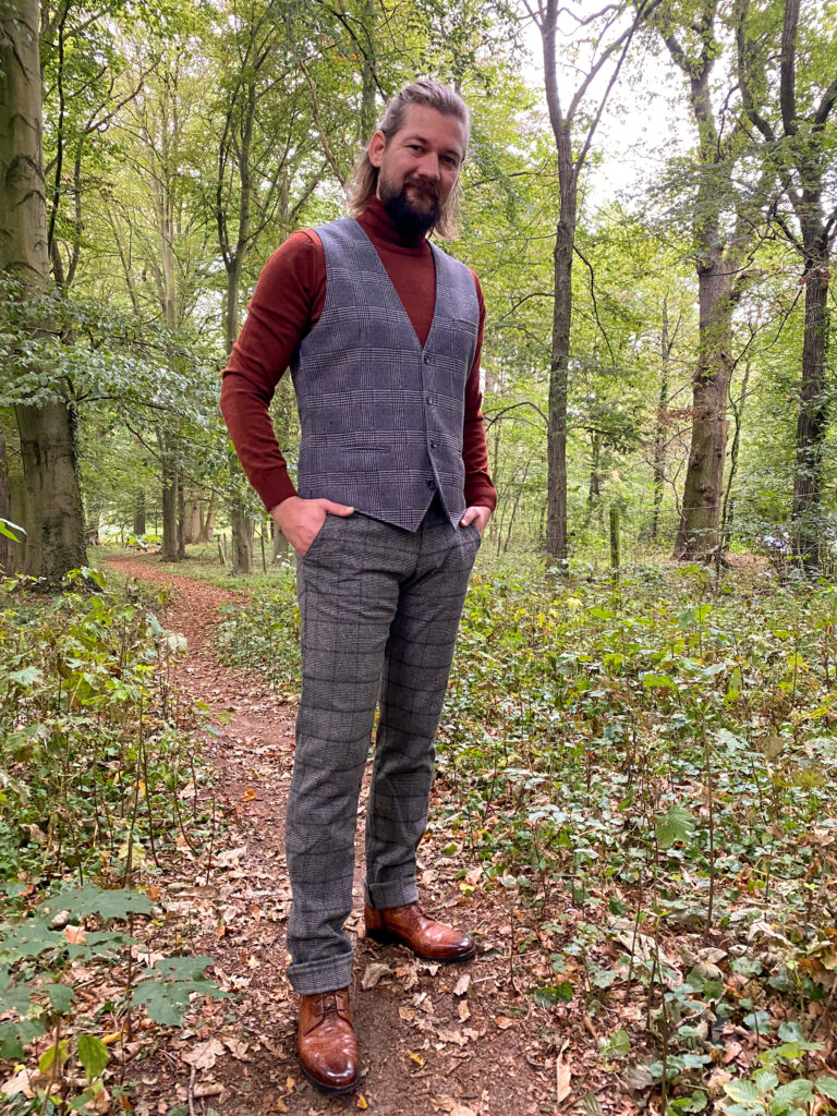 Herfst winter kleding mannen trends. De herfst is alweer begonnen en dat betekend dat onze kledingkeus op het punt staat te veranderen. De lichte kleuren en stoffen maken plaats voor donkere, warmere en comfortabele herfst en winterkleding. Het afgelopen jaar heb ik voor Suitable een aantal outfits laten zien op B4men. Deze keer heb ik voor een herfstoutfit gekozen die rustig, gekleed en ook heel modieus is. Alles wat wij deze herfst en winter gaan zien aan trends komen terug in deze outfit. De kleur roodbruin / roest is voor mannen echt dé kleur deze winter. Daarnaast zien je veel patronen zoals blokjes en ruitjes terug in de kleding. De kledingtrends voor mannen zijn qua stijl een combinatie van gekleed met casual. Waar het klassieke pak nog even in de kast mag blijven hangen, zie je wel hele toffe combinaties van spijkerbroek met een gilet en of mooie colberts eroverheen. Ook zie je juist een hele nette pantalon gecombineerd met een casual pullover.