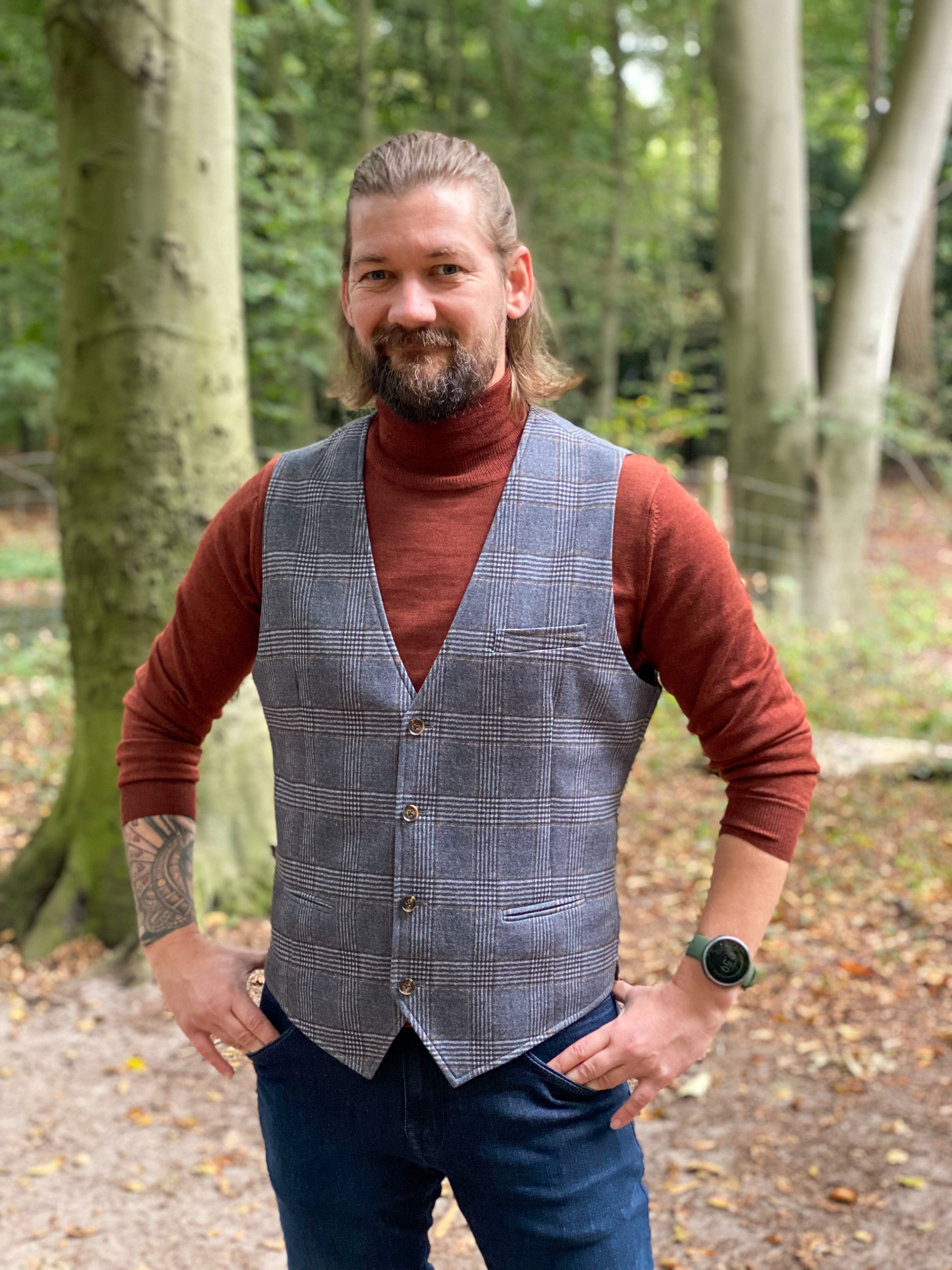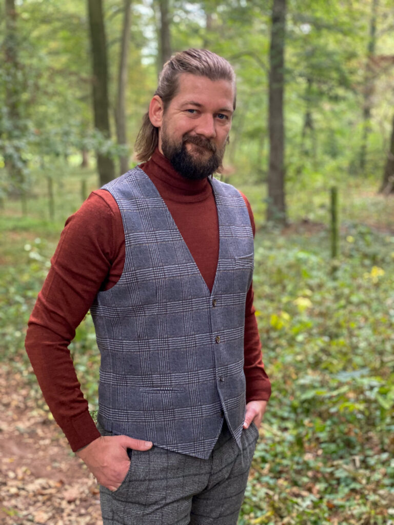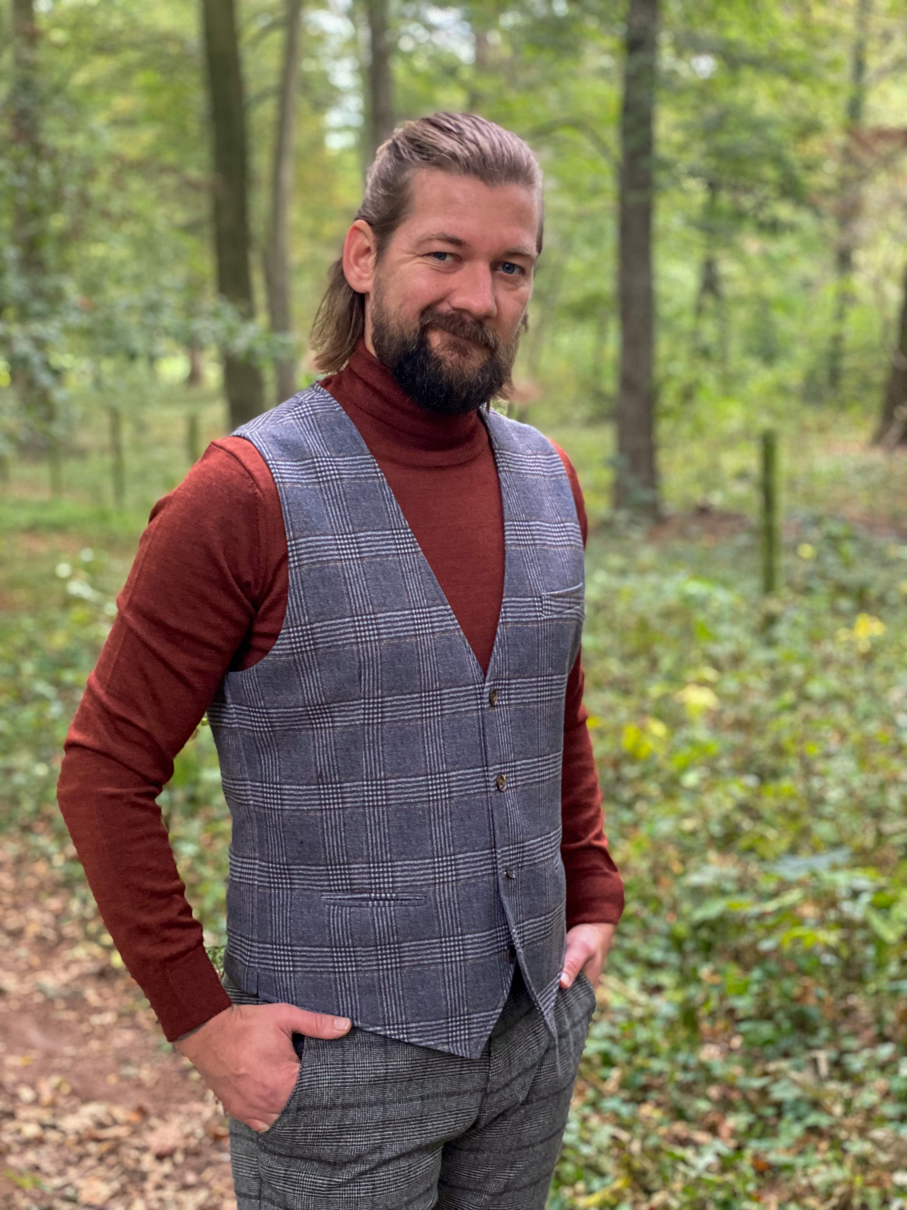 Suitable Kris Gilet Grijs Bruin: Een gilet, ik ben er gek op en draag deze al jaren. Het maakt iedere outfit bijzonder. Dit gilet is door zijn ruit patroon super modieus en zwoel gekleed als casual te dragen. Dit gilet zit het mooist wanneer je hem één maatje kleiner besteld dan je werkelijk draagt.