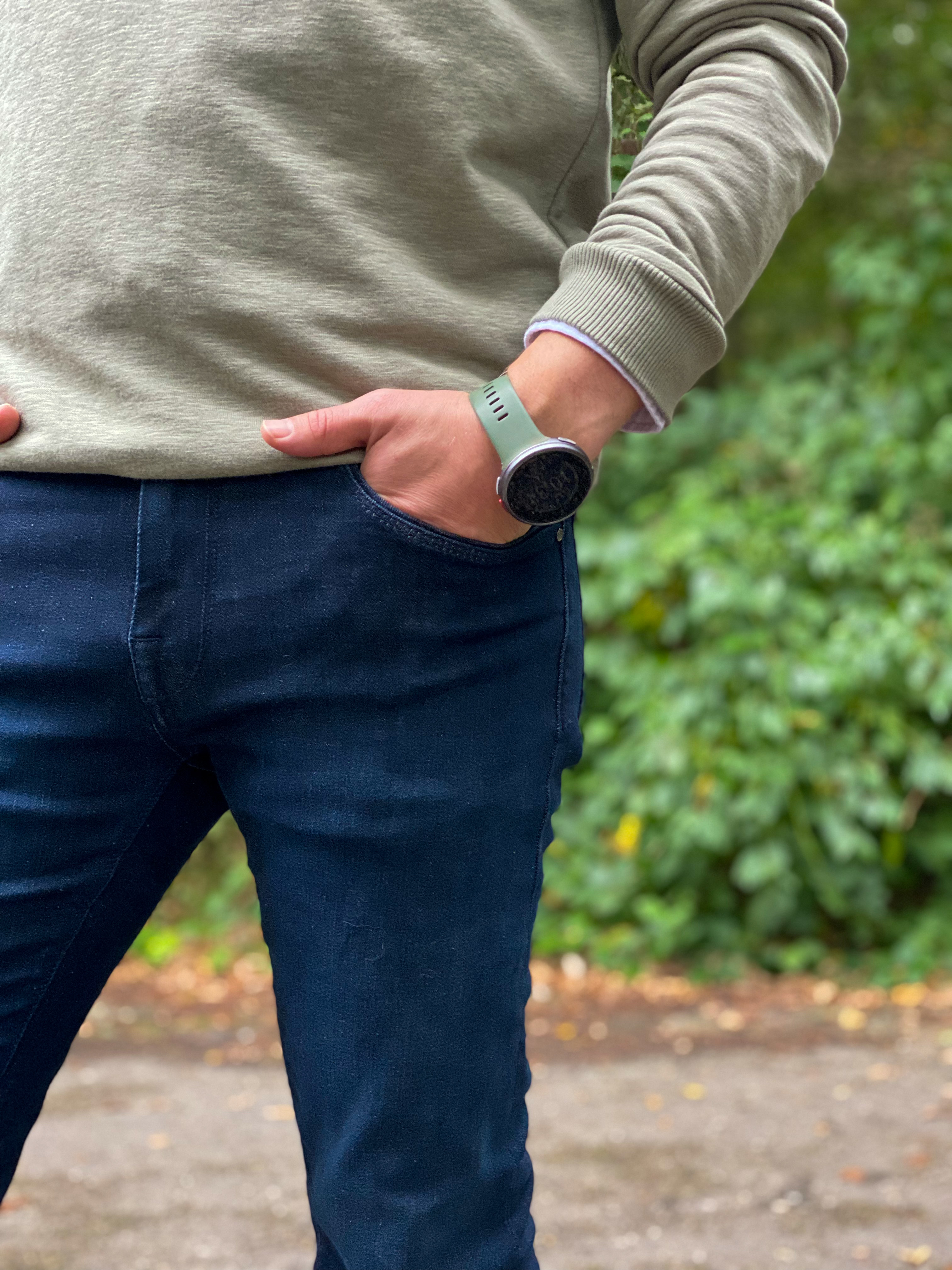 Suitable Hume Jeans Navy Rise: deze duurzame herenjeans is niet alleen heel mooi, hij zit ook echt geweldig. De jeans heeft een slim fit pasvorm. Door de stretch in de jeans heb je alleen niet het gevoel dat je een jeans draagt. Hij voelt zacht en knelt niet. De kleur is heel diepblauw, een kleur wat ik heel mooi vind. Het maakt dat je de jeans zowel casual als sportief-casual kunt dragen.
