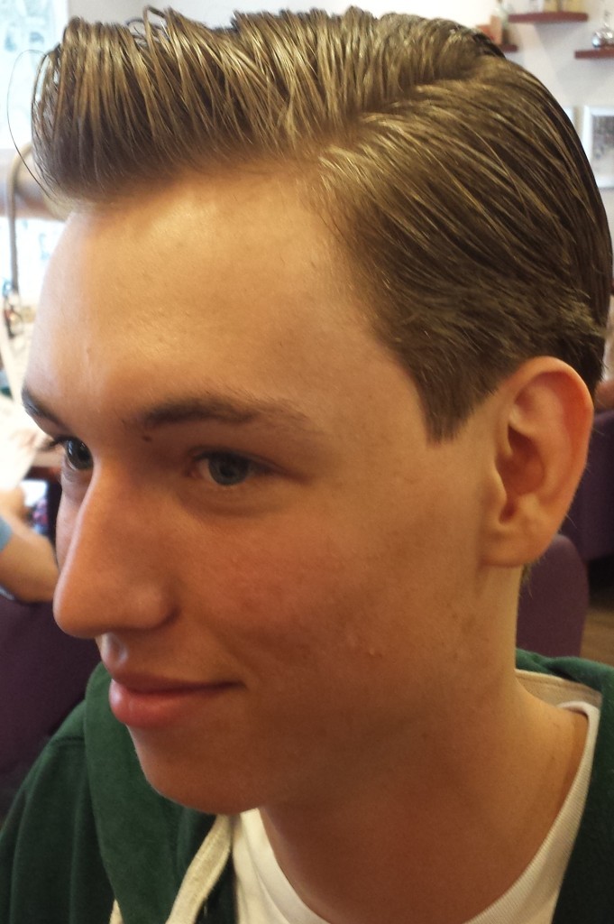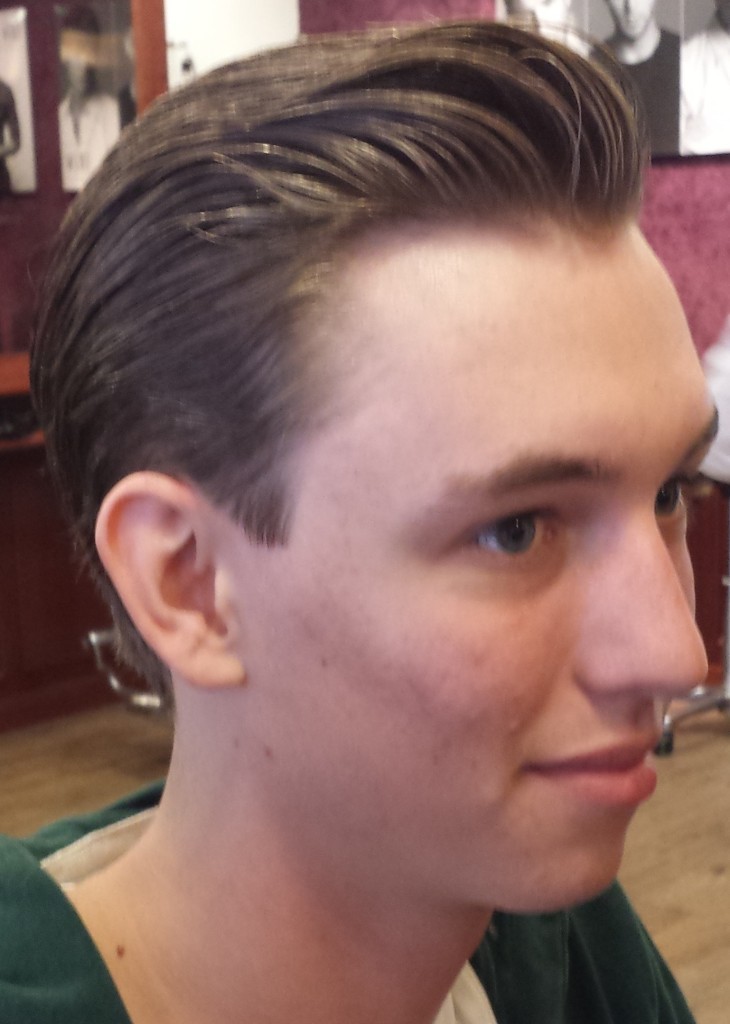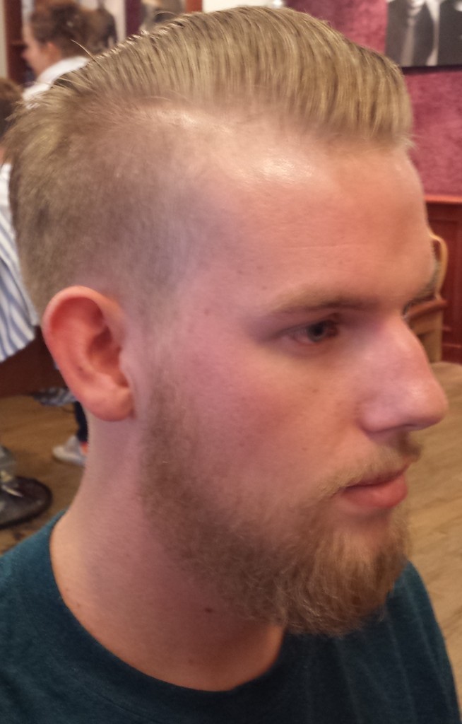 Zoals de meesten van jullie inmiddels wel weten ben ik al 17 jaar werkzaam als herenkapper en later als barbier. Ik doe dus niets anders dan bezig zijn met alles wat te maken heeft met hoofd en/of baardhaar. Nu is voor mij mijn kapsel heel erg belangrijk en ik varieer er ook veel mee…nee, niet continue van lang naar kort, maar wel qua styling. Het wil echt niet zeggen dat je met een kort kapsel maar 1 manier van stylen hebt. Nu is het voor mij natuurlijk heel makkelijk, ik heb de producten voor het grijpen en daarbij heb ik natuurlijk verstand van de diverse haar stylingsproducten die er op de markt zijn en waar ze voor bedoeld zijn. Ik probeer altijd mijn klant die bij mij op de stoel zit uitleg te geven over hoe hij thuis het beste zijn kapsel kan onderhouden, maar ik kan het natuurlijk niet iedere dag het voor hem in model brengen. Ik merk ook dat als mijn haar een dag niet lekker zit…ja, ook bij mij gebeurt dat wel eens, ik me ook meteen onzekerder voel. Soms zie ik mannen op straat lopen waarbij het duidelijk is dat ze geen tijd aan hun kapsel besteden en s’morgens zo uit bed stappen met de slaap plekken nog in het haar. Onvoorstelbaar vind ik dat. Kijk, over smaak valt niet te twisten en je zal mij dus ook geen mening horen geven over een bepaald kapsel die iemand heeft…nu hou ik van heel veel verschillende stijlen dus er is weinig wat ik niet mooi vind, maar iemand die helemaal geen tijd aan zijn kapsel besteed vind ik als man en zeker als barbier zijnde ontzettend jammer. Ik zou bijna in staat zijn om diegene te vragen of ik wat aan zijn haar mag doen hahaha. Mijn werk is voor mij heel belangrijk en om jullie een goed beeld te geven van wat voor soort kapsel ik maak voor mijn klanten een paar foto’s van mijn werk.  (kwaliteit foto’s is wat minder, want ze zijn met mijn mobiel gemaakt)