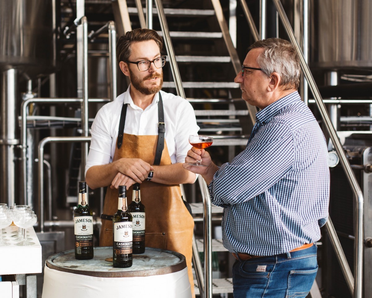 Ook in Ierland leven ze niet onder ’n steen, maar staan in een moderne wereld. Bij Jameson uit zich dat in een voortdurende zoektocht naar smaak en kwaliteit. Zo kwam de hoofd distiller van Jameson in gesprek met de brouwer van de Cork’s Franciscan Well Brewery. In dat gesprek maakten zij een Masterplan om in de whiskeyvaten van Jameson een tijdje het stout (pittig en zwaar donker bier) van de brouwerij te laten rijpen en de vaten daarna te gebruiken voor de finishing van de Jameson whiskey. Na wat experimenteren is er een hele smaakvolle Jameson Caskmates ontstaan die vorige week in Nederland werd geïntroduceerd.