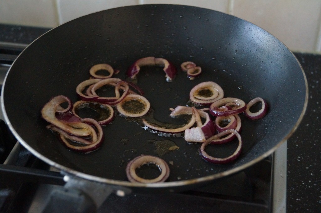 – 2 rode uien, in ringen gesneden