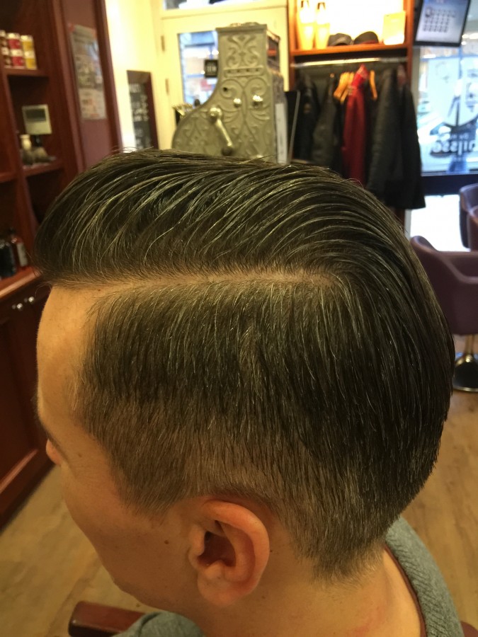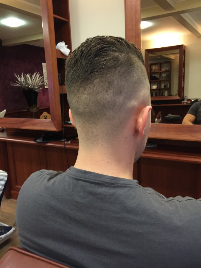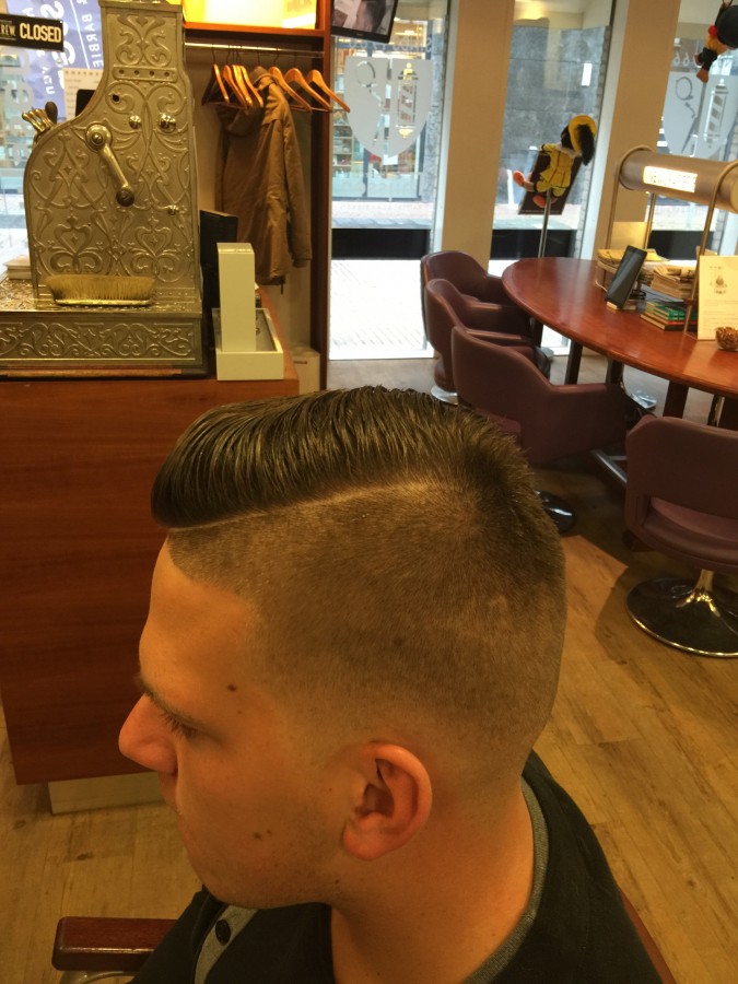 Iets waar ik bij mij in de salon veel vraag naar heb, is de Razor Fade. Dit is tevens een variant op de Pompadour. Het grote verschil met de classic Pompadour zijn de opgeschoren contouren. De Razor Fade loopt van niets naar iets (vak taal), maar het idee is simpel. Je krijgt steeds een langere lengte haar zonder dat je randen ziet. Tegenwoordig scheer ik vaak de onderkant zelfs met het mes helemaal glad. Nog een verschil met de Pompadour is het feit dat de Razor Fade niet veel zegt over de bovenkant van het kapsel. Die mag ook kort zijn, een Pompadour draag je met lange bovenlengte.