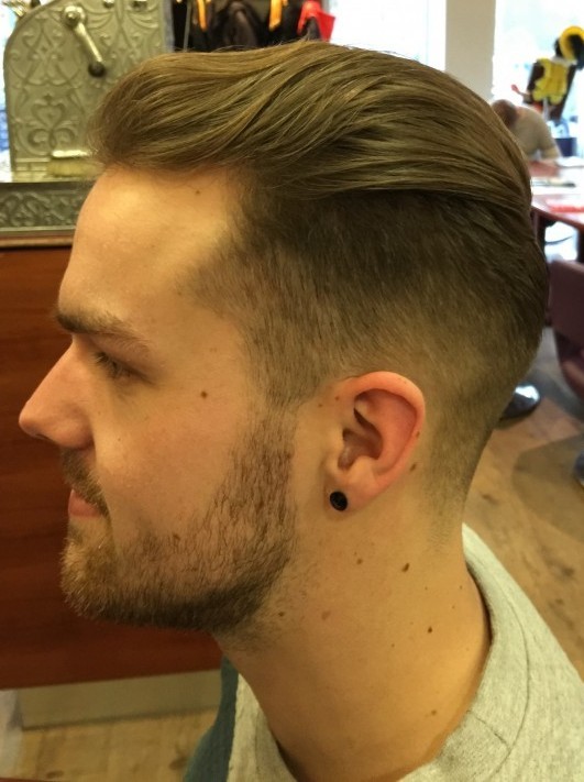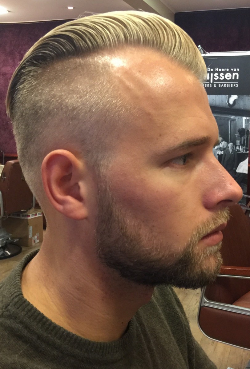 Mannenkapsel naar achteren gekamd. De trend van nu!