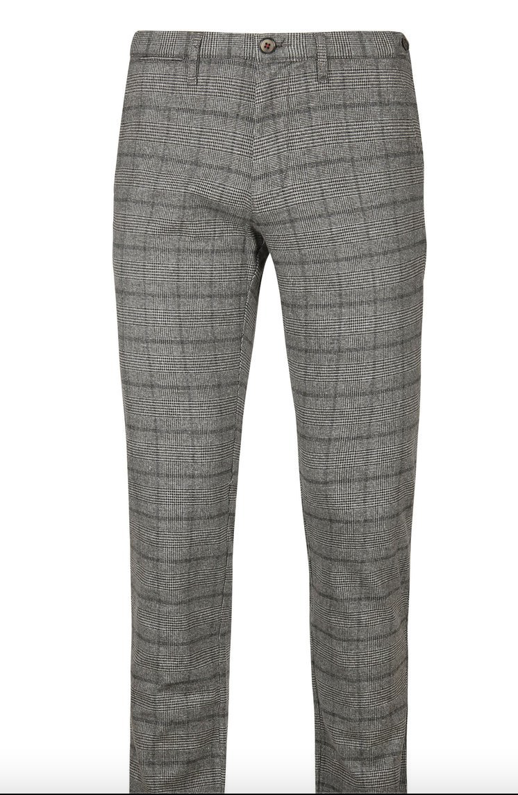 Grijze Chino / pantalon: Suitable Chino Locke Ruit Grijs. Een heerlijk zittende broek die je heel goed op verschillende manieren kunt dragen. De mogelijkheden zijn eindeloos. Zakelijk met een nette schoon en een overhemd maar met een toffe sneaker en shirt echt heel goed casual te dragen. Het draagcomfort van de Chino is heel hoog. Het zal heel snel één van je favoriete broek worden. Tip: rol je pijpen net iets te hoog op voor een hippe casual look.