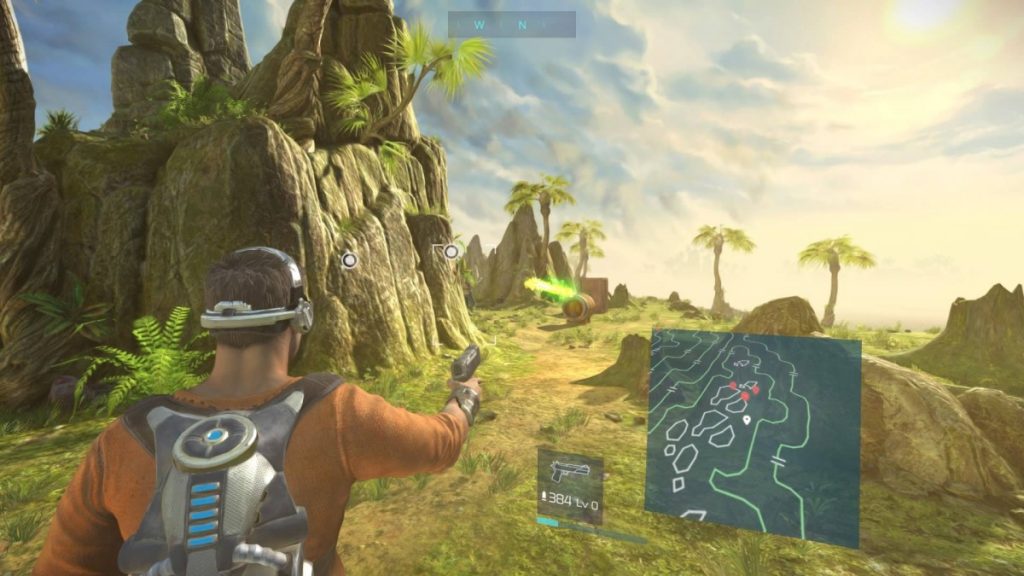 Na de introductie kom je in een klein landschap waar je je tutorials door moet brengen. Ik was van mijzelf al een beetje in de rondte gaan lopen en heb verschillende dingen gedaan voordat ik naar het tutorial mannetje was gegaan. Ik had al 3/4 van mijn tutorial gedaan, voordat ik ook maar met iemand heb gepraat die het mij wilde laten doen. Vind ik opzich wel jammer dat dat zo gaat, maar aan de andere kant scheelde het ook weer tijd aangezien je het niet nog eens hoeft te doen. De animaties van Cutter zijn voor mijn gevoel ook een beetje sloom. Het spel heeft soms naar mijn gevoel iets teveel tijd nodig om na te denken wat het moet doen als je bijvoorbeeld wilt bukken. Ook met schieten in een gevecht was ik erg blij dat ik aim-assist aan had staan. Voor mij was het aardig lastig om te mikken met het hand pistooltje wat je in het begin krijgt. Daarnaast heb ik ook geen idee hoeveel HP de vijand nog over heeft, dus ik blijf maar op ze schieten tot er een ‘Doodshoofdje’ boven hun hoofd komt te staan.