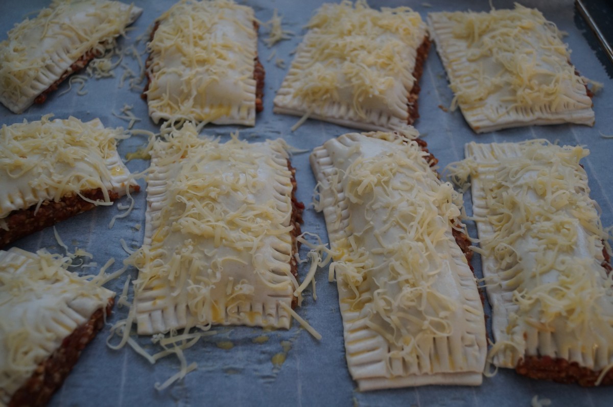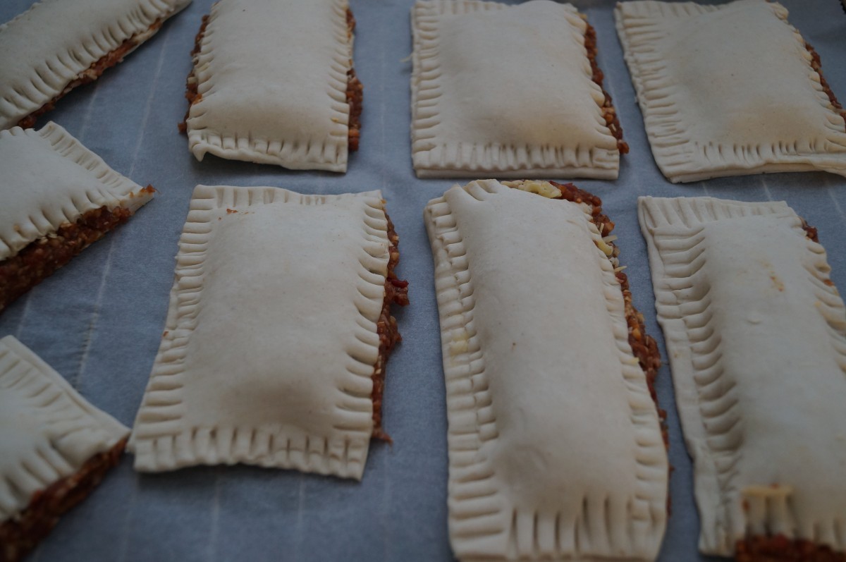9. Druk de randen weer goed aan met een vork, het gehakt wat eruit loopt druk je ook goed aan