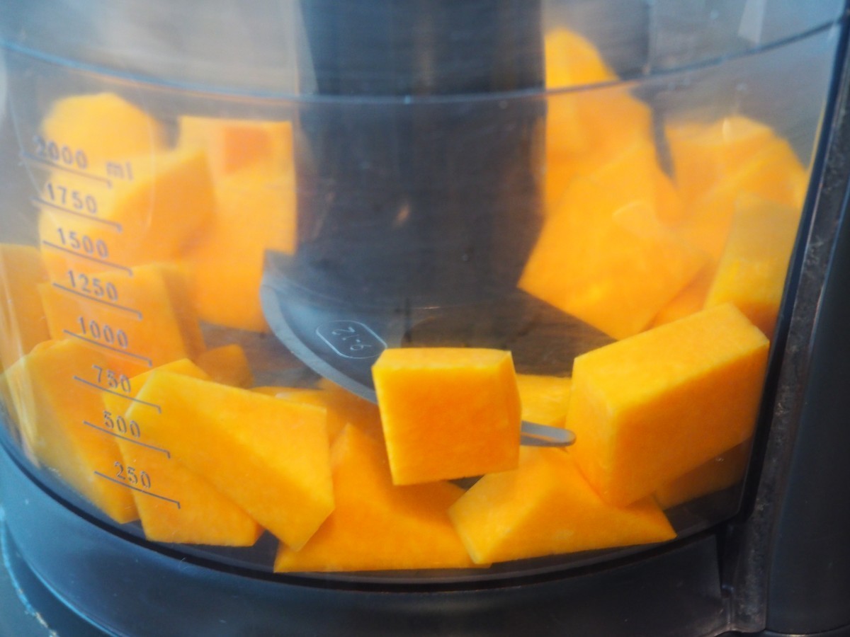 - Hak de pompoen fijn in een keukenmachine