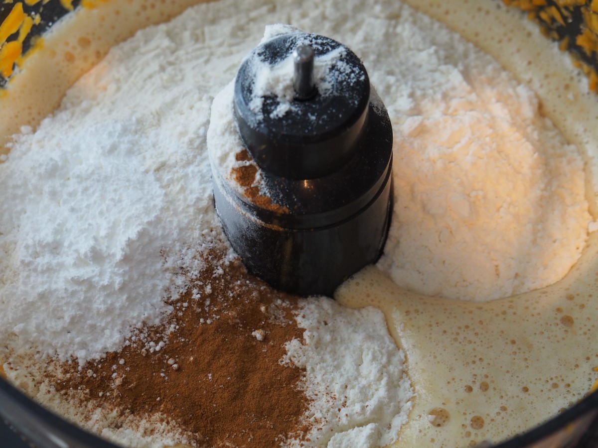 - Als de eieren goed gemixt zijn, voeg dan de bloem, bakpoeder, kaneel en een snufje zout toe en mix ook weer goed door elkaar
