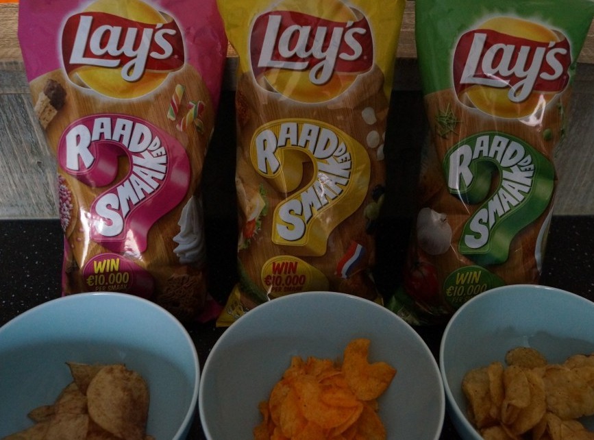 Eitje toch…even proeven en hop je weet de smaak. Tja, was het maar zo makkelijk!! Ik moet voor de blog heel veel drankjes proeven en ik weet hoe moeilijk het kan zijn. Smaak is ook enorm onderhevig aan suggestie. Waar Lay’s je graag een hint geeft welke richting je moet denken op de verpakking maak dat het eigenlijk nog moeilijker!! Je krijgt al een suggestie en opeens proef je die ook. Ik heb samen met mijn kinderen dit spelletje gedaan en we kwamen erachter dat het super leuk is, maar ook super moeilijk. Iedereen bij ons proefde weer wat anders hahaha.