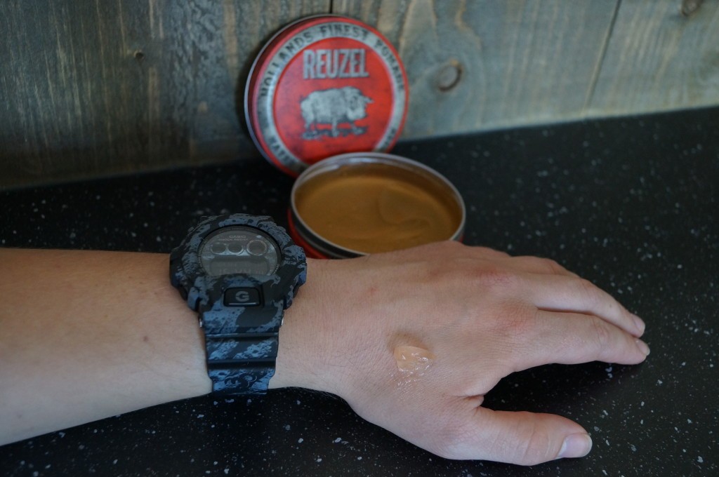 Deze pomade is vanaf nu mijn favoriet! Wat een waanzinnig lekker product!!  Deze geeft stevigheid en een super mooie glans zonder dat hij vet is. Ik blijf nog steeds een fan van de Suavecito Pomade, maar wat ik daar mis is die mooie diepe glans en dat heeft deze pomade van Reuzel wel. Ook voor dit product geldt dat hij het beste resultaat geeft in droog haar. Wanneer je dit product gebruikt is het niet nodig om heel veel te gebruiken, een kleine hoeveelheid goed verdelen in je handen en dan aanbrengen in het haar is voldoende. Wanneer je graag iets meet stevigheid wenst….doe dan na het aanbrengen je handen een heeeeel klein beetje nat maken onder de kraan en ga dan met je natte handen over je haar. Dit zorgt ervoor dat de pomade na het opdrogen net even steviger is. De geur is trouwens ook erg lekker het heeft een beetje een zoete geur (ze zeggen dat het naar cola moet ruiken,  maar dat ruik ik zelf niet).
