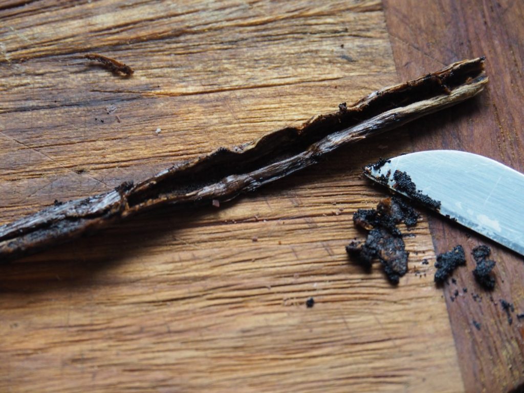 6. Snijd het vanille stokje open en schraap het merg eruit