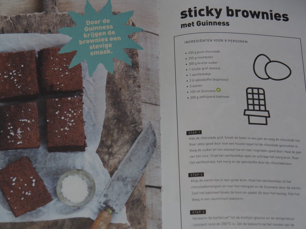 Eén van die recepten is een Sticky Brownie met Guinness bier. Deze sprak mij meteen al aan en toen ik voor St Patrick’s Day een Guinness opgestuurd kreeg wist ik dat ik meteen aan de slag moest met dit recept. De eerste vraag die waarschijnlijk in je opkomt is “hoeveel proef je het bier”? Uiteraard proef je het bier, want de Guinness die ik gebruikt heb in dit recept is behoorlijk stevig qua smaak. Echter geeft dit juist een stoere smaak aan de brownie! Ben je meer een echte zoetekauw, dan kan je ook een zoeter bier gebruiken. Bier zorgt in dit recept ervoor dat je een heerlijke luchtige brownie krijgt. Wat ontzettend balen was, is dat ik deze brownie het liefst op de BBQ klaar wilde maken maar mijn kolen waren op!!! Stom Stom Stom!!!