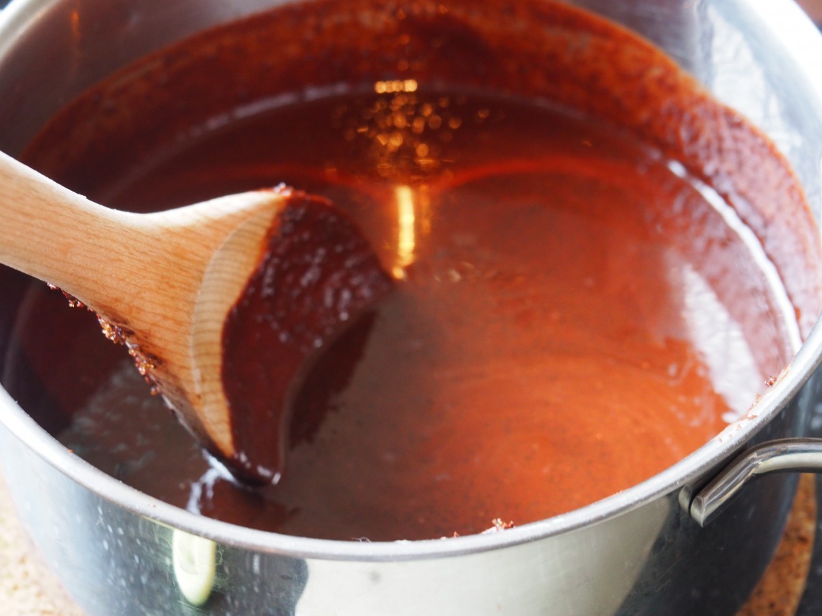 3. Roer alles goed door elkaar met een houten lepel tot de chocolade gesmolten is