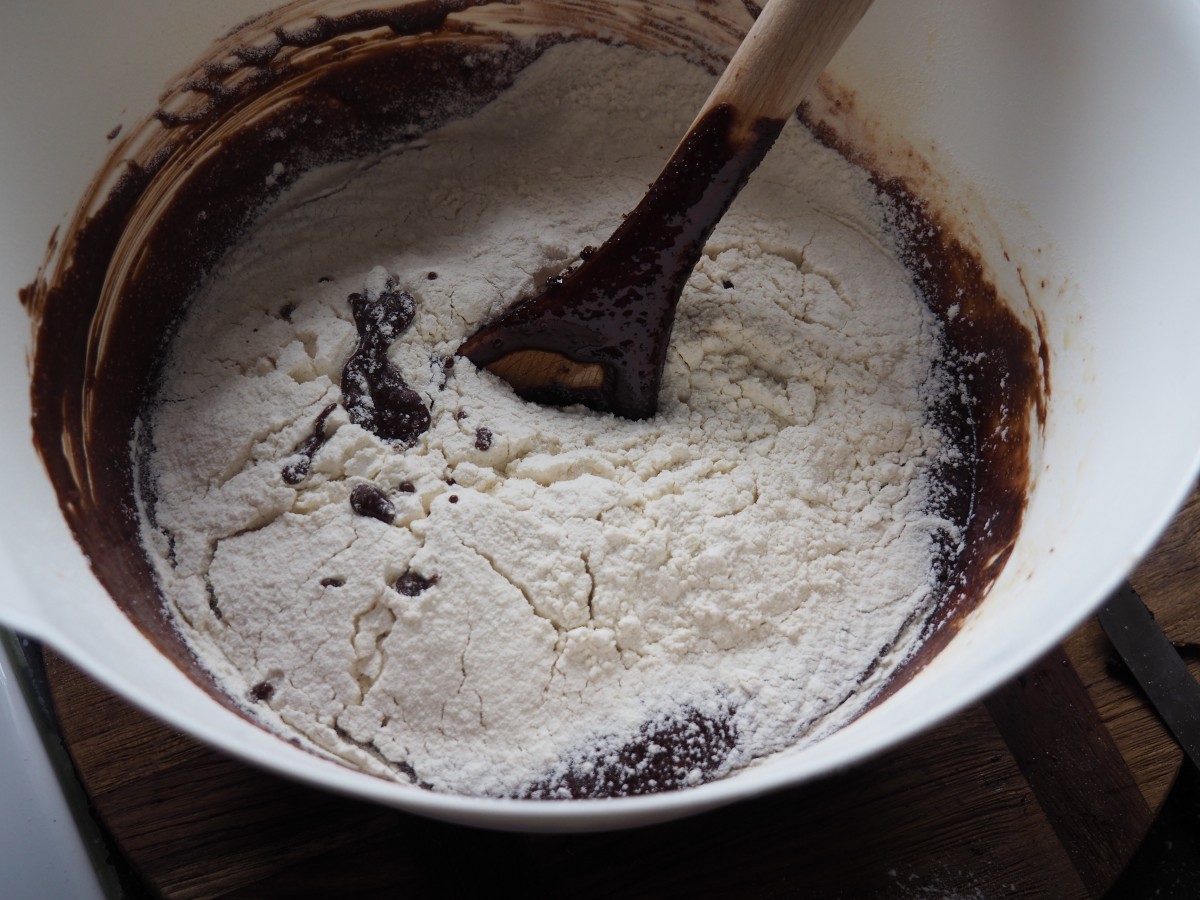 10. Zeef het bakmeel boven de kom en spatel dit door het beslag