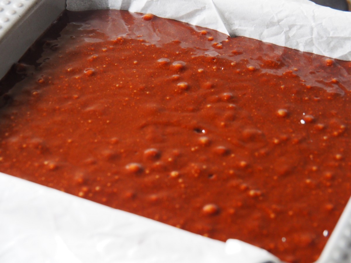 11. Giet het deeg in een brownievorm voor in de oven of een aluminiumvorm voor op de BBQ