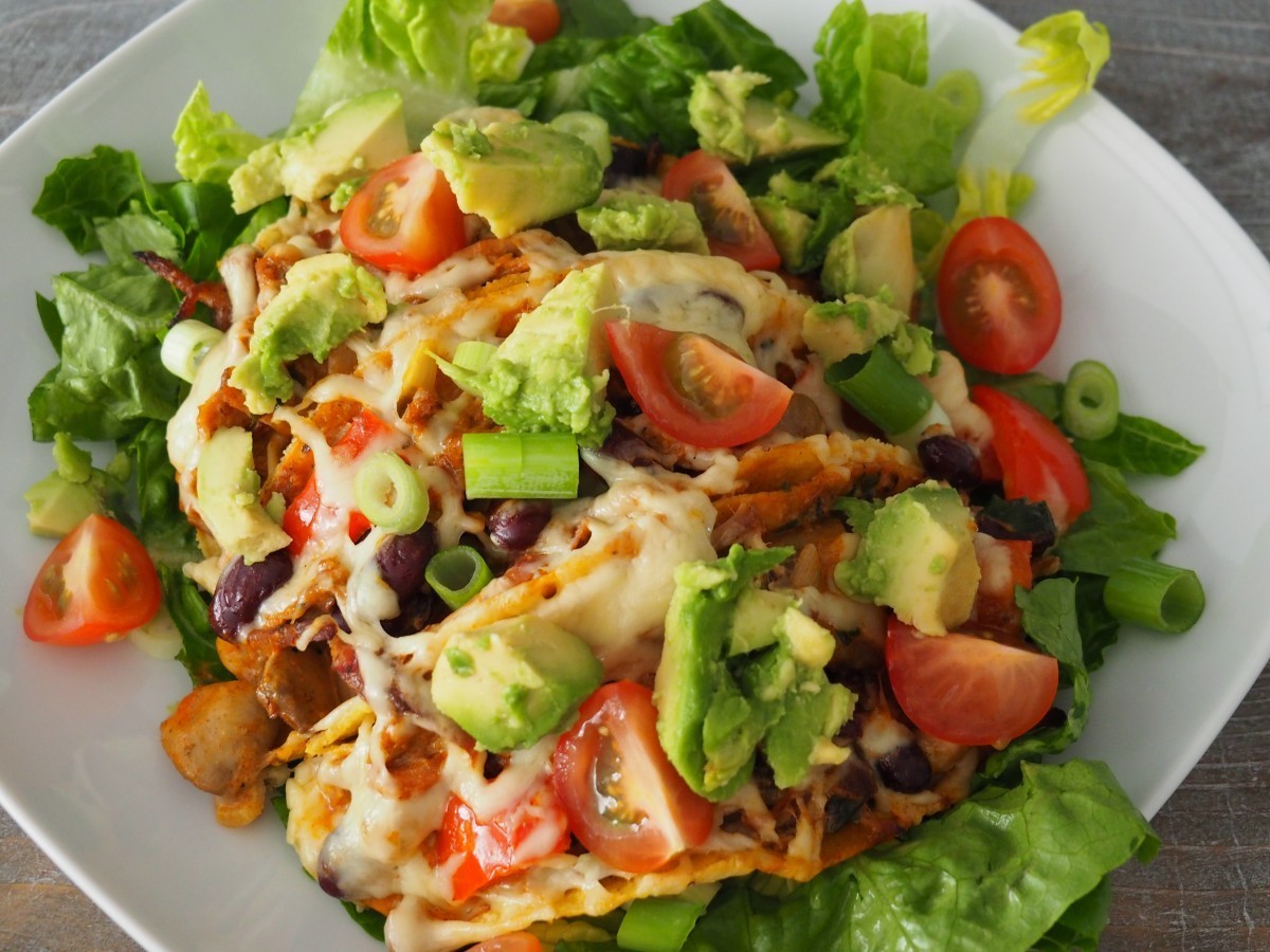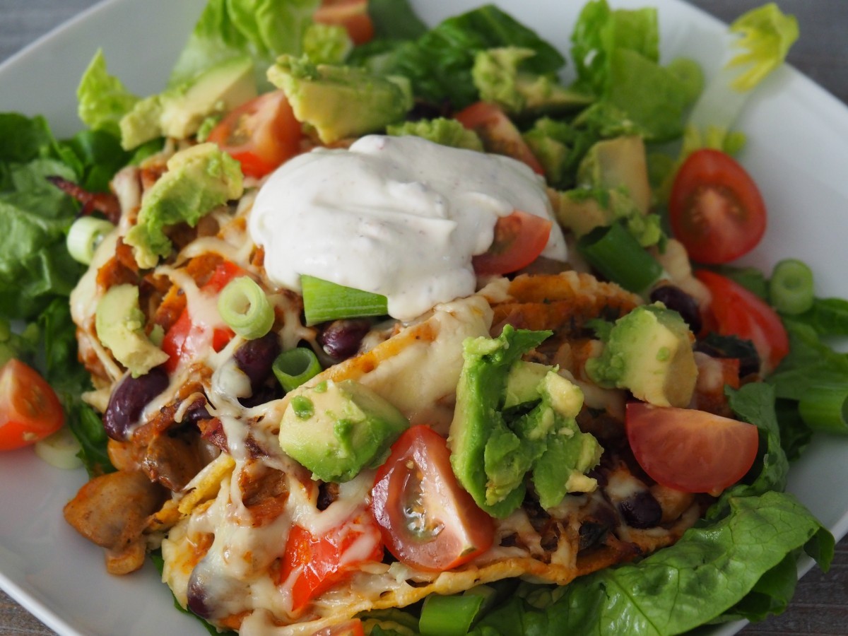- Schep een flinke klodder Griekse Yoghurt erover en serveer er wat frisse sla bij