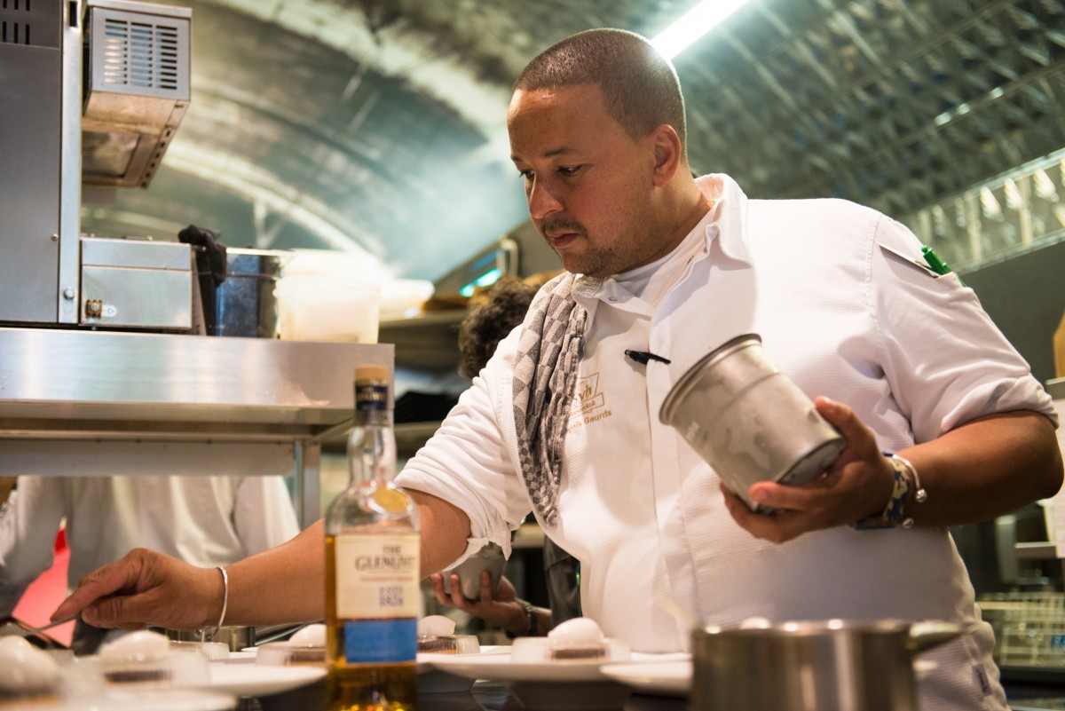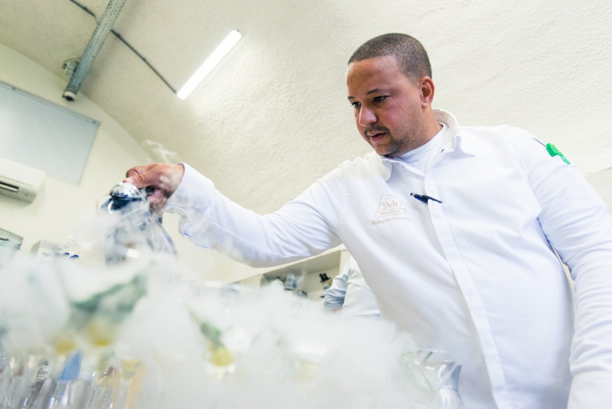 Maar goed. Zoals in Schotland werden wij ook nu getrakteerd op een lesje cocktails maken op basis van The Glenlivet F.R.. Dit keer werd de whisky gecombineerd met o.a. Orange juice, Fever-Tree Lemonade, grapefruit en geroosterde rozemarijn. Bij het maken van deze cocktail maakte François ook gebruik van stikstof. Door een demonstratie van het koken met stikstof in een uitzending van “De Wereld Draait Door” kreeg hij landelijke bekendheid.