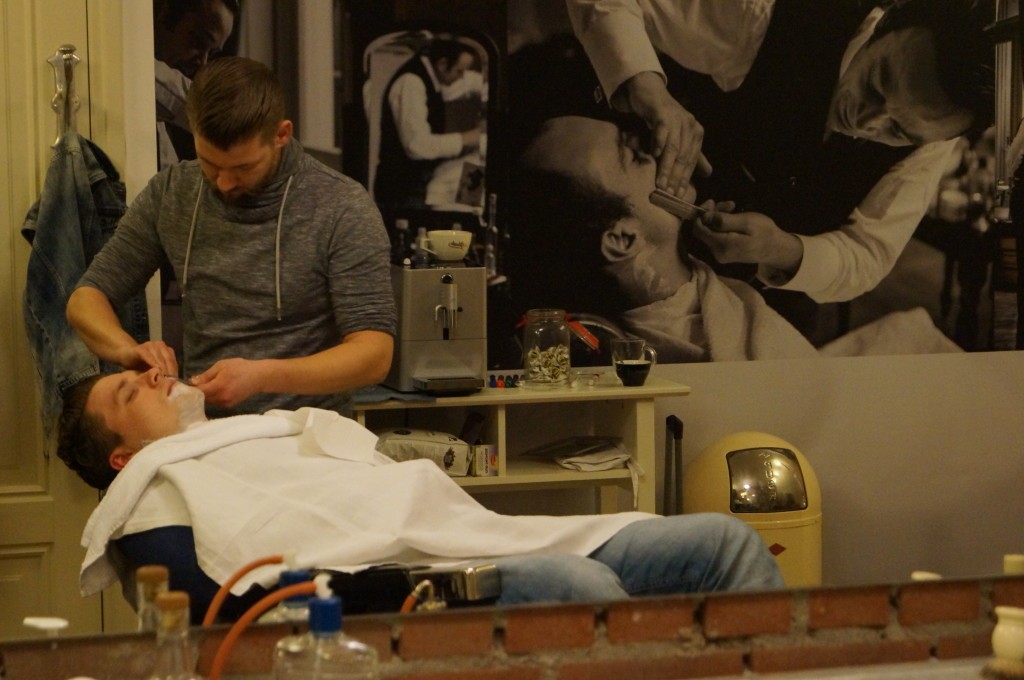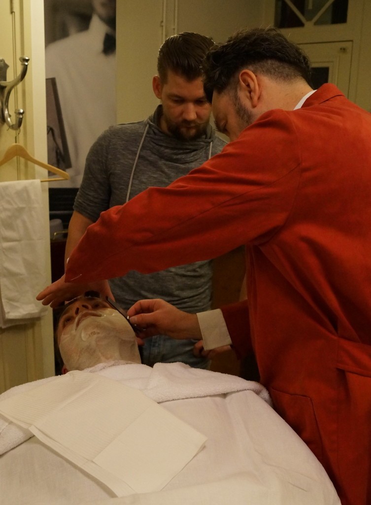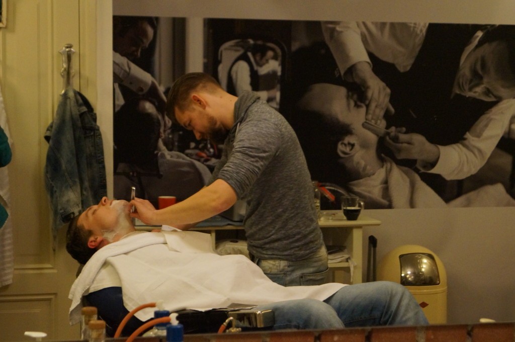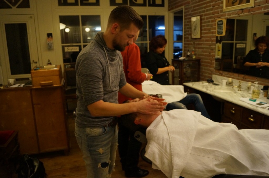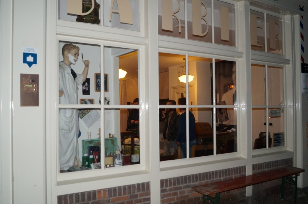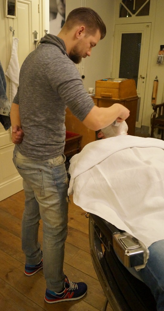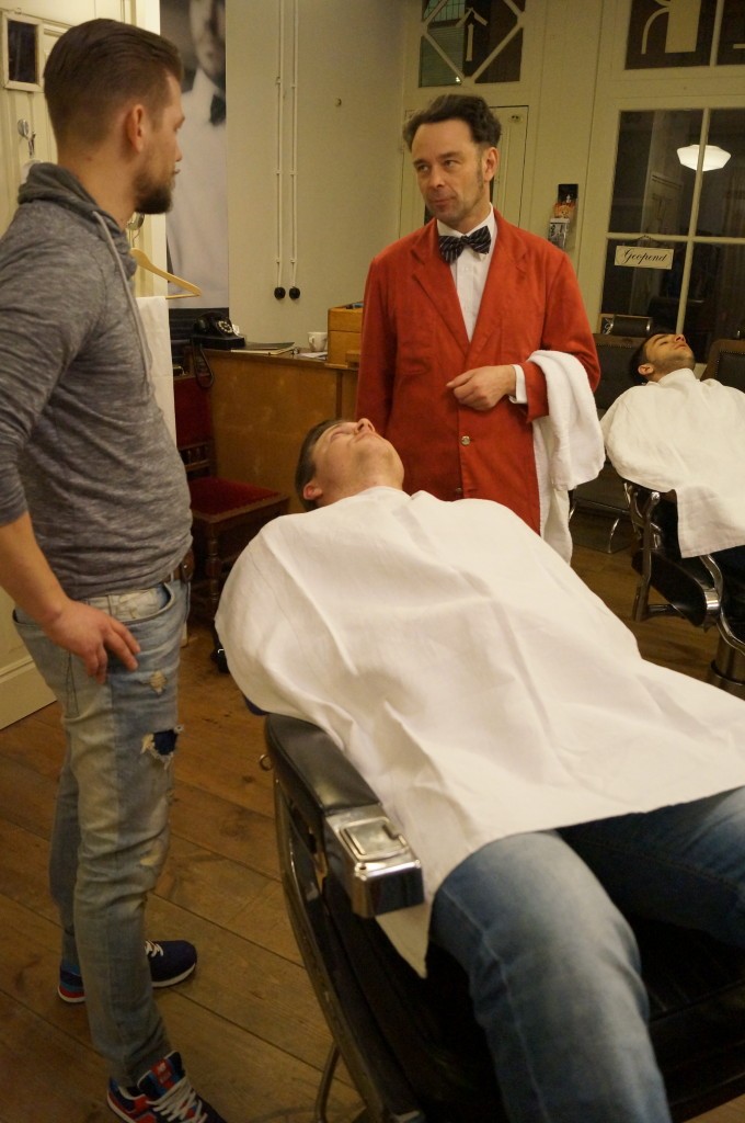 Deze training was een kado van mijn vrouw (nog bedankt). Afgelopen maandagavond heb ik samen met Charrel (model) een avond les gehad van de meester barbier Jan Heideman. Jan Heideman heeft een bijzondere kijk op het ambacht van het barbier zijn. Het scheren is voor Jan Heideman ontstaan uit een pure passie en hobby voor het scheren. Het knippen heeft Jan Heideman nooit gedaan en dat maakt denk ik de passie nog intenser. Jan Heideman heeft het ambacht geleerd van echte Italiaanse vakmannen, ook het temperament heeft hij daar duidelijk meegekregen hahaha. Zijn gevoel voor tijd is ook op zijn Italiaans, cursus duurt officieel van 19.00 tot 21.30, echter werd het 23.30 en als het aan Jan Heideman gelegen had duurde het nog langer hahaha. Maar wat is het toch een vakman…..zoveel kennis en ervaring. De ambiance van zijn zaak  is geweldig, hij zit in een heel mooi oud pand op één van de mooiste plekjes van Haarlem, de mooie antieke meubels en stoelen bij Jan Heideman zorgen ervoor dat je al snel het gevoel hebt terug in de tijd te stappen.