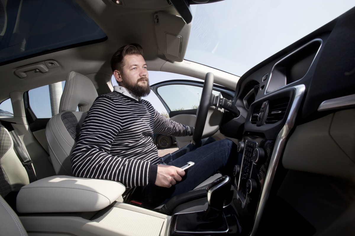 Nu naar de binnenkant, deze is nog steeds heel Volvo. De bekleding is niet direct mijn smaak, maar ook zeker niet lelijk. Wat opvalt is de binnenspiegel, die heeft bijna geen omlijsting en dit heeft een verassend ruimtelijk resultaat. Verder is alles overzichtelijk en makkelijk te bedienen. Bam en toen gingen we de toekomst in! Welkom bij Volvo On Call. Het speerpunt voor Volvo en straks voor de concurrentie, is de auto zoveel mogelijk koppelen aan jouw telefoon. Met Volvo On Call is de auto verbonden met je mobiele telefoon. Dit is nog niet heel bijzonder maar er zijn een aantal snufjes aan toegevoegd die het wel weer heel bijzonder maken. Zo heb je door je telefoon geen sleutel meer nodig, het portier openen en de auto starten kan doordat je de “sleutel” op je telefoon heb staan. Ook is het mogelijk om cruciale info af te kunnen lezen op je mobiel. Zo kan je zien of er deuren en ramen openstaan en ook is het mogelijk om de airco of verwarming te activeren op afstand en of timer. Tot zover is het leuk en makkelijk, maar nog niet die grote verandering die ons leven op zijn kop gaat zetten. Wat ik heel bijzonder vind, is het kunnen delen van de “sleutel” op je mobiel. Ik kan via een simpele stap jou de sleutel sms’n zodat jij de auto kan bedienen. Ik hoef dus niet meer fysiek aanwezig te zijn en de sleutel ook niet. Denk eens in hoeveel makkelijker dit is voor bedrijven met een groot wagenpark. Maar op deze manier kunnen we ook auto’s makkelijker met elkaar gaan delen. Mensen in een flat of straat hoeven niet allemaal een eigen auto te hebben, maar een aantal die we dan eventueel kunnen delen. De auto zal denk ik steeds minder een bezit gaan worden. Pas nog is gebleken uit onderzoek dat de auto 80% van de tijd stil staat. Dit soort mogelijkheden zullen onze toekomst gaan bepalen.
