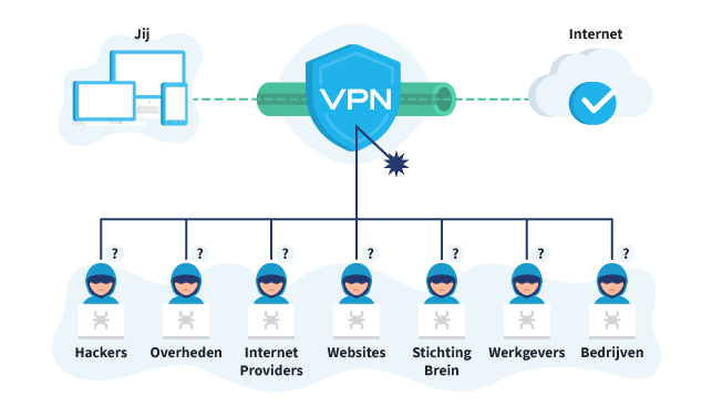 Een VPN is een Virtual Private Network. Deze server is dus een soort ‘virtuele privé netwerk. Het zorgt ervoor dat je al jouw dataverkeer via een versleutelde, beveiligde verbinding naar een externe VPN-server kan sturen. Dus al jouw gegevens (denk aan je IP adres en alles wat je opvraagt) gaan versleuteld naar de VPN-server. Daarna ga jij het internet op als je VPN-server. Jij bent dus niet meer traceerbaar omdat niemand meer weet wie jij bent of waar je vandaan komt. Het is dus niet alleen een goede optie voor je online privacy maar ook kan je jezelf beschermen tegen hackers, omdat zij jouw gegevens ook niet meer kunnen zien. Hackers kunnen niets meer van jouw gegevens ophalen, omdat zij altijd zullen uitkomen bij de gegevens van de VPN in plaats van bij jou.