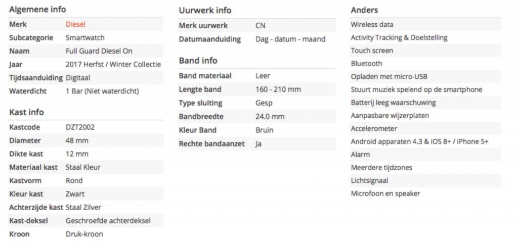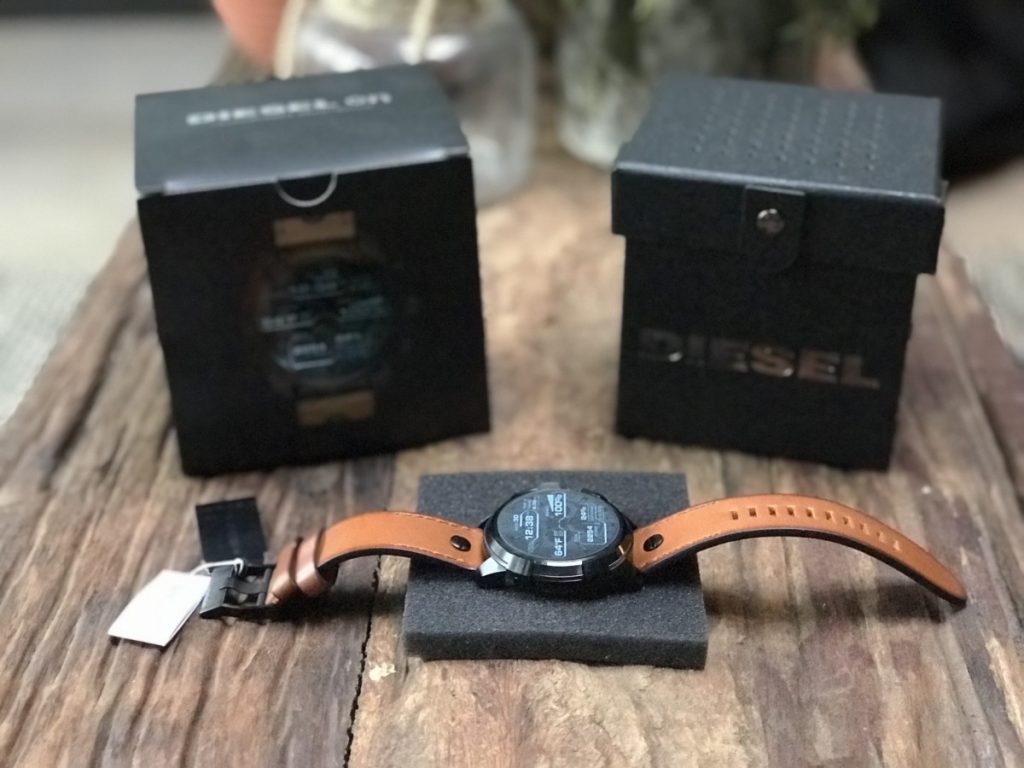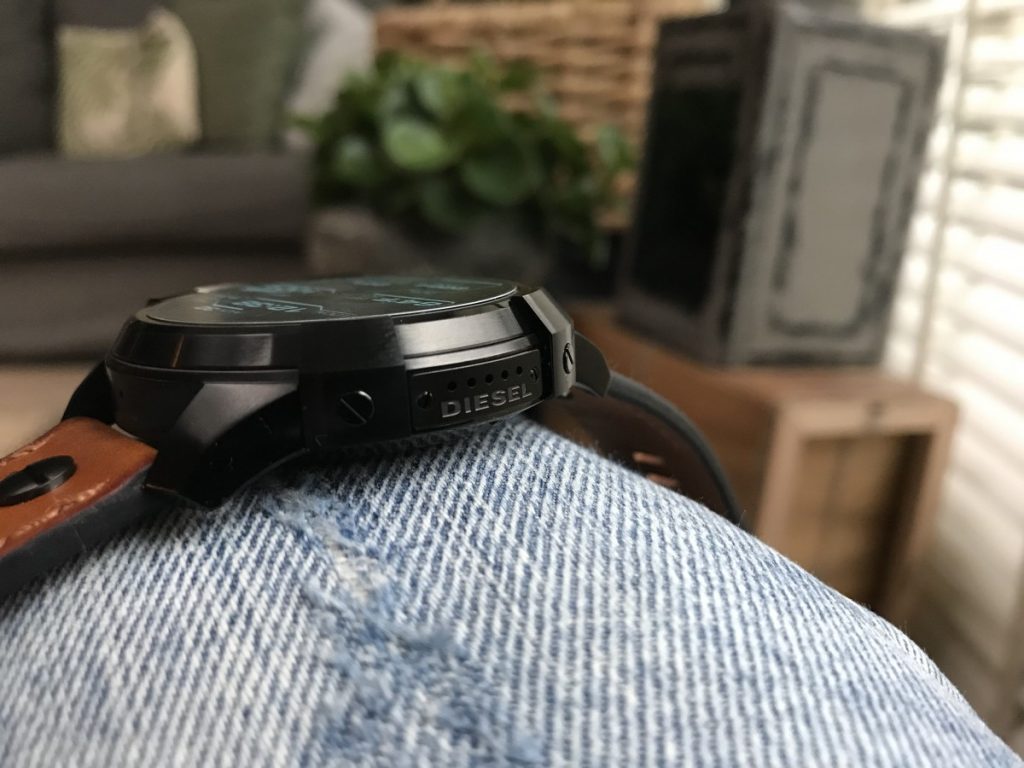 Super stoer, dat is eigenlijk het eerste wat mij direct opvalt. Alles is stoer! De verpakking waar het horloge in zit is al echt een tof item op zichzelf. Vervolgens heb je het horloge zelf, een stoere band gemaakt van Genuine Leather. Het leer is van een dikke en mooie kwaliteit. Stoere stiksels en popnagels maken het helemaal af. Ik vind de afwerking en zorg die besteed is aan het uiterlijk echt heel tof! Het horloge is niet alleen super stoer maar ook zeer multifunctioneel. De Diesel ON Smartwatch is te koppelen met Android OS 4.3 of IOS 9 en hoger. Hij kan je stappen tellen en houd je calorieverbranding bij. Verder kan je via je horloge je telefoongesprekken voeren, aannemen en ophangen. Super handig is dat je alle berichtjes of appjes ziet binnenkomen en je kan via het touchscreen een kort berichtje terugsturen. De band is verwisselbaar maar door de combinatie van bruin en zwart past hij juist bij iedere outfit. Hij is spatwaterdicht dus ook een regenbuitje kan hij prima hebben.