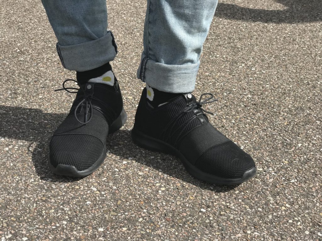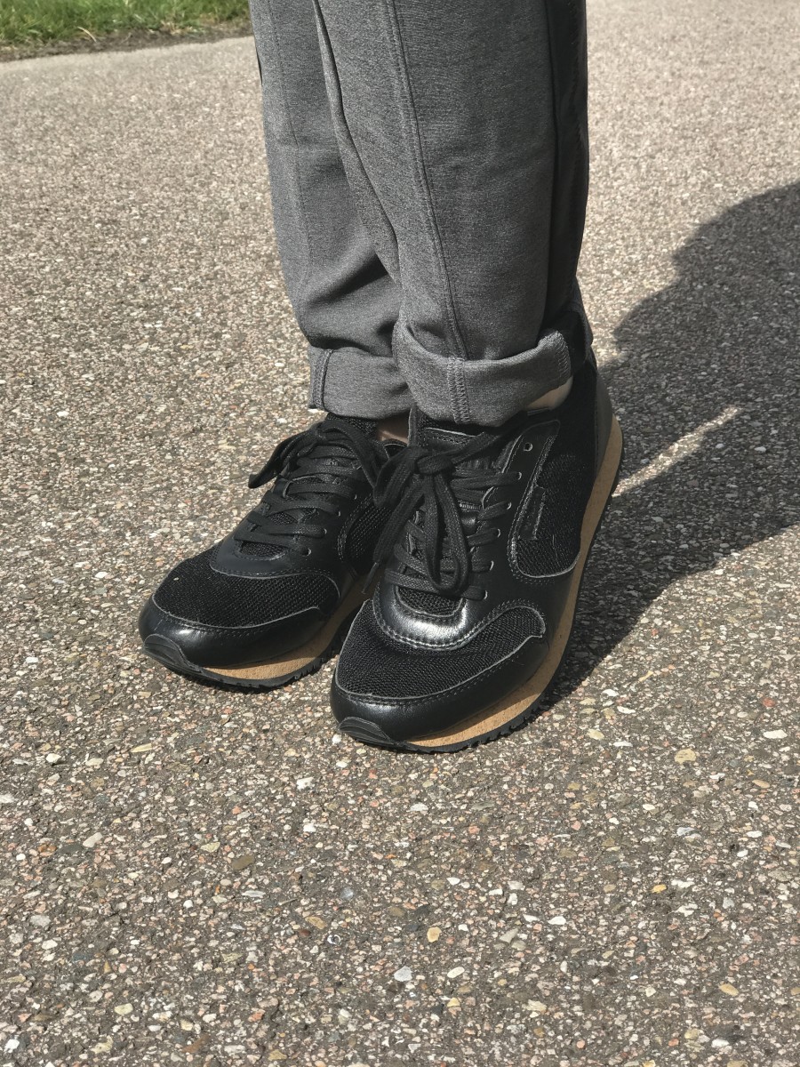 Dit klopt absoluut en niet alleen ik ben fan van deze sneakers, want ook Marie Louise is inmiddels helemaal om. Zij heeft erg moeilijke voeten en het is iedere zomer een drama om voor haar schoenen te zoeken. De schoenen zijn te klein, te groot, te smal of te breed. Wij hebben echt de afgelopen jaren een vermogen uitgegeven aan schoenen voor haar…..en….nooit goed! Dit maal had Marie Louise erg geluk en mocht ook zij een paar sneakers uitzoeken. Ze was meteen verliefd geworden op een zwart paar met een kurken onderkant…ook weer simpel en stoer maar daardoor juist opvallend. Even getwijfeld welke maat ze zou nemen maar uiteindelijk toch voor haar eigen maat 39 gegaan. Dit zijn bij haar de eerste sneakers die meteen goed zaten. Dit keer niet te groot, niet te klein, niet te breed of niet te smal maar gewoon perfect! Dit schrijven wij niet omdat wij betaald worden hiervoor, want dit is niet het geval, dit is echt onze oprechte mening. Inmiddels is Marie Louise zo om dat ze zelfs nog een paar gaat aanschaffen….nu nog even kijken welke kleur ze wilt.