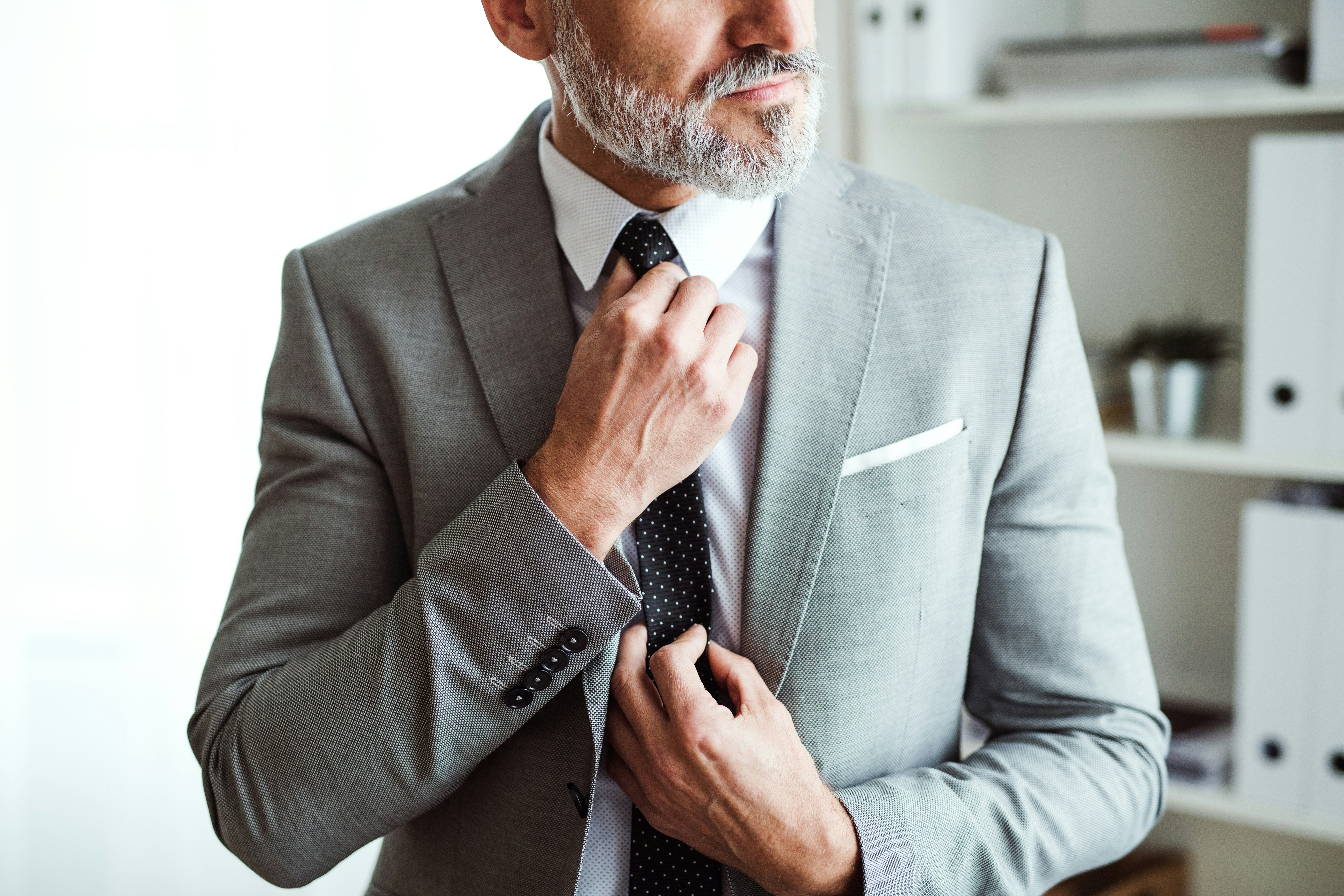 Heb je een donker pak, dan kun je deze eenvoudig een meer casual uitstraling geven door te kiezen voor een licht overhemd en bijpassende lichte stropdas. Voor een moderne en stijlvolle look kun je dit ook nog combineren met stoffen schoenen in dezelfde lichte tint. Denk aan crème, een lichte zandkleur of lichtgrijs.